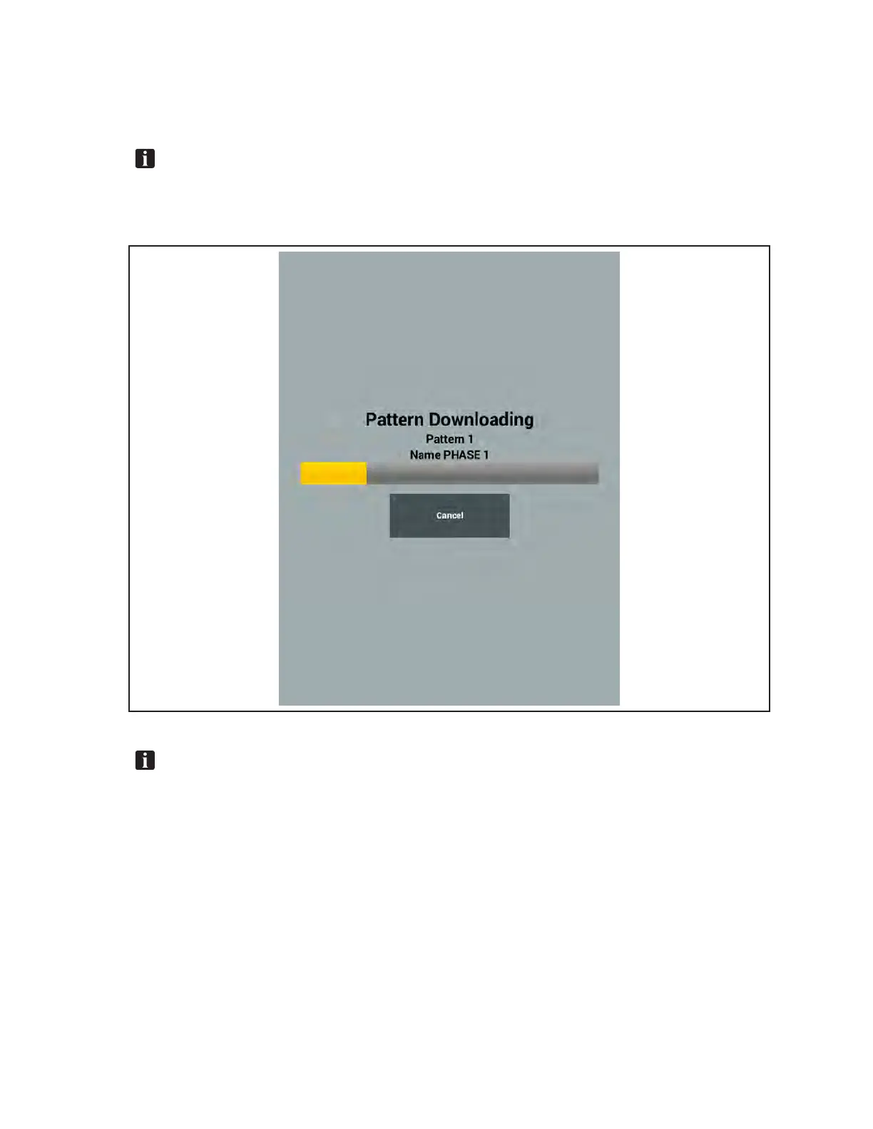 pattern number and name. If necessary the download may be aborted by pressing “Cancel” on the