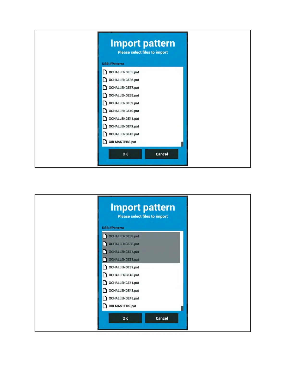 6. When you have nished selecting patterns, press the “OK” button on the screen to transfer them