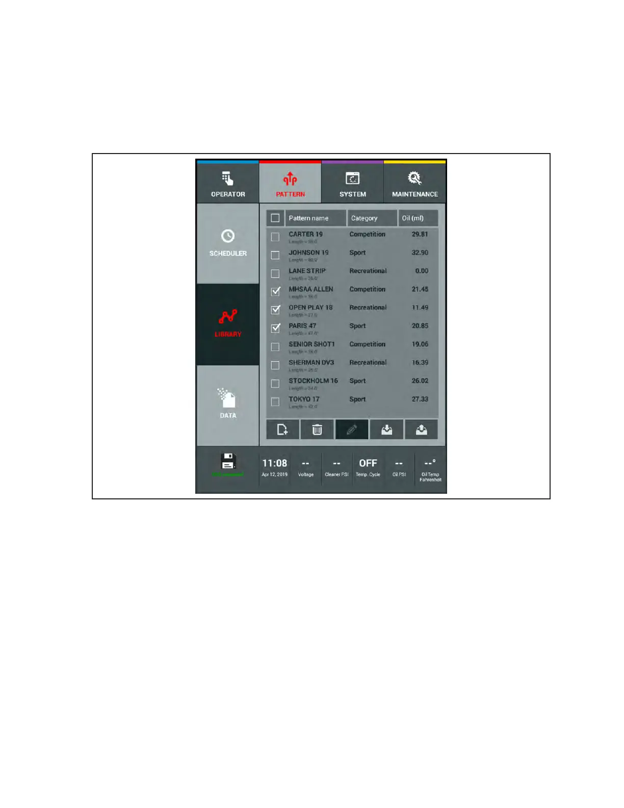 2. Select patterns to Export by touching the check box located to the left of the pattern name and