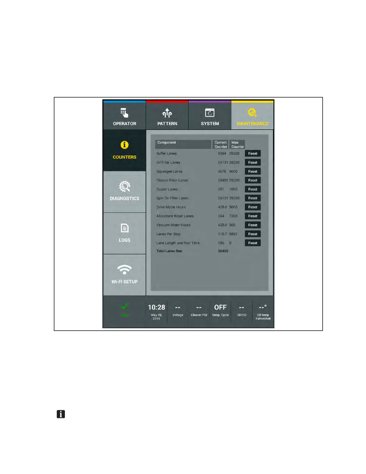 NOTE:Youcan’tresetthecounterforTotalLanesRun.