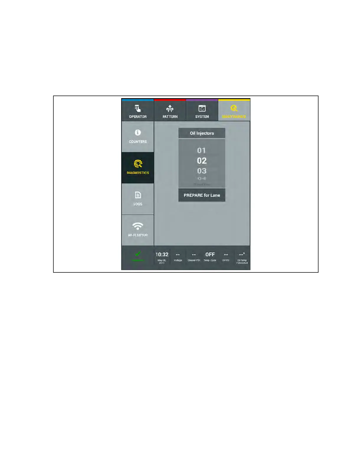 1. Go to the Maintenance menu and select Diagnostics, then select Oil Injector Test.