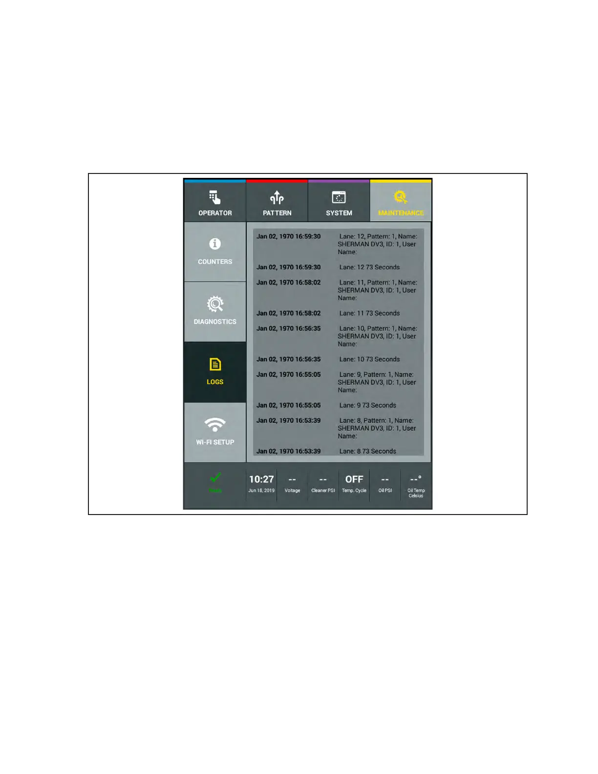 1. Go to the Maintenance screen and select Logs, then select the Pattern Run Log.