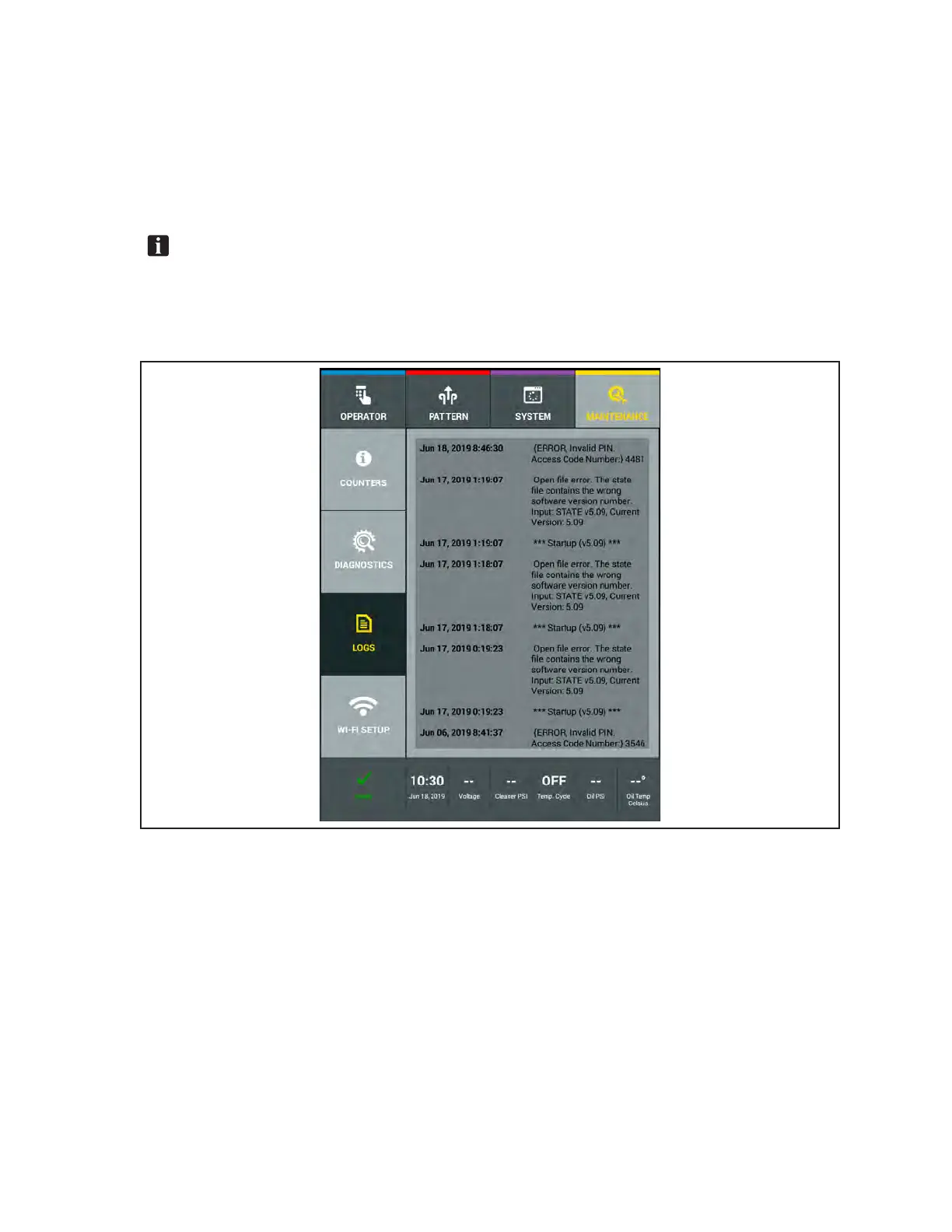 1. Go to the Maintenance screen and select Logs, then select the Messages Log.
