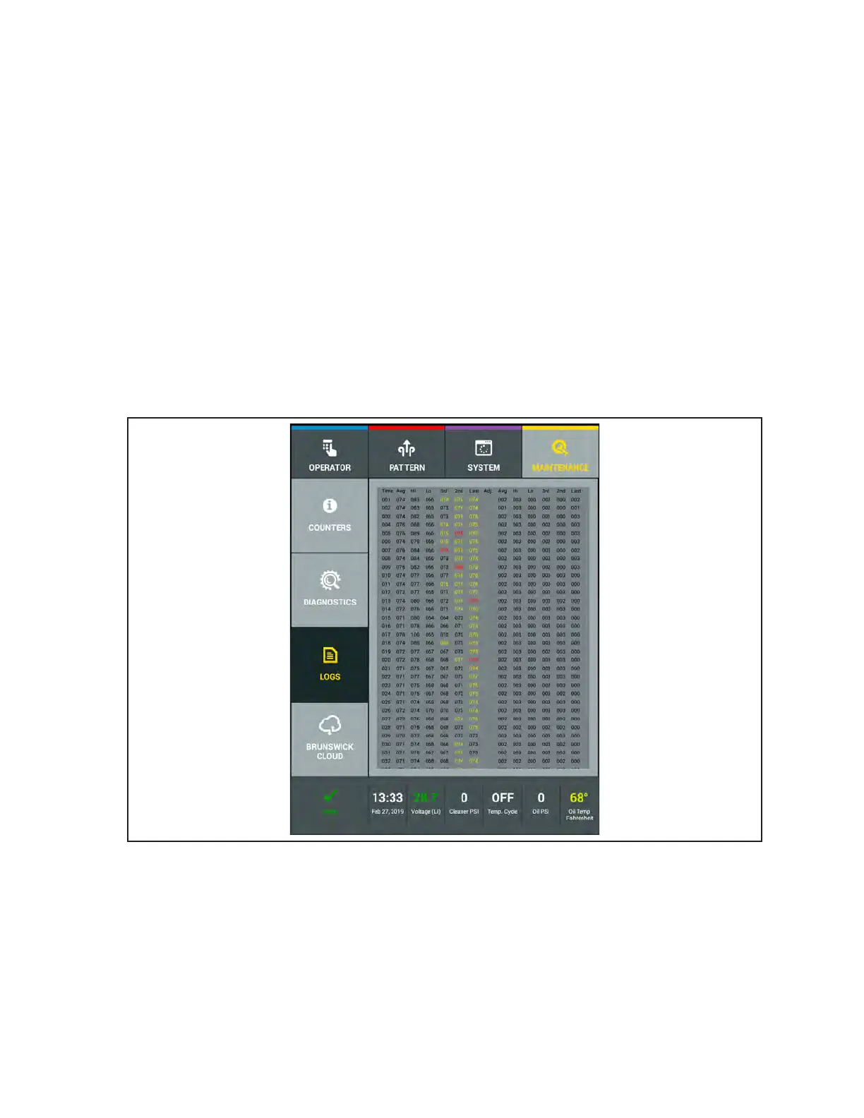 1. Go to the Maintenance screen and select Logs, then select the Run Time Log.