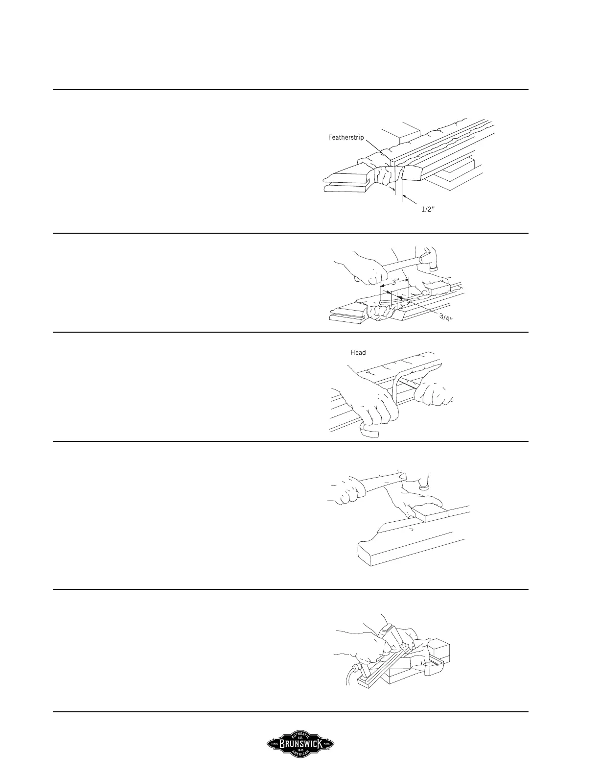 featherstrip down with a tapping block and hammer,
