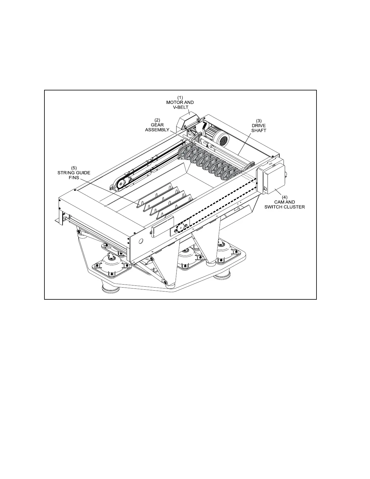 (1) MOTOR AND V-BELT (2) GEAR ASSEMBLY (3) DRIVE SHAFT