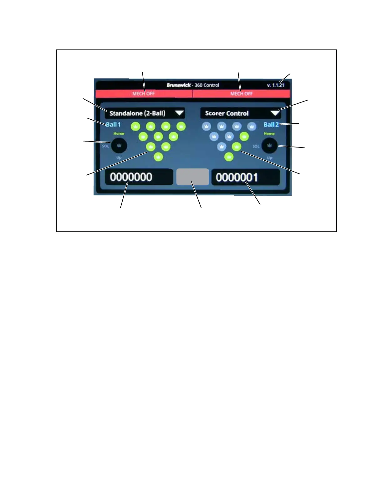 (2) Current Ball - Pinsetter ball count. This will display the current pinstter ball count. Depending