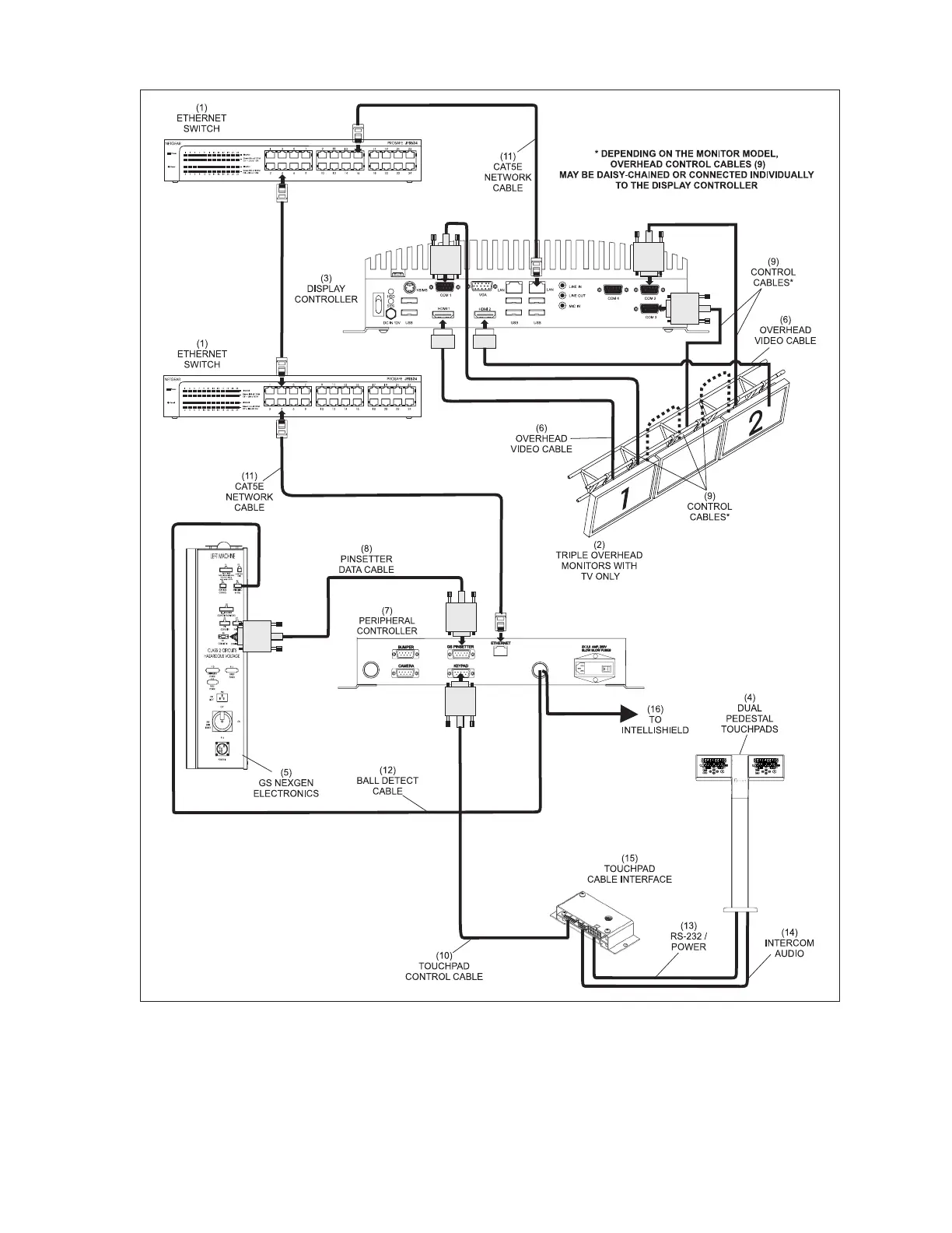 (4) DUAL PEDESTAL TOUCHPADS (5) GS NEXGEN ELECTRONICS (6) OVERHEAD VIDEO CABLE