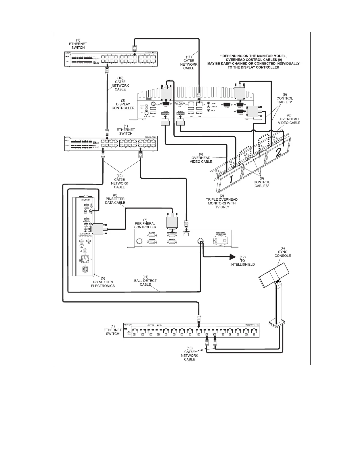 (10) CAT5E NETWORK CABLE (11) BALL DETECT CABLE (12) TO INTELLISHIELD