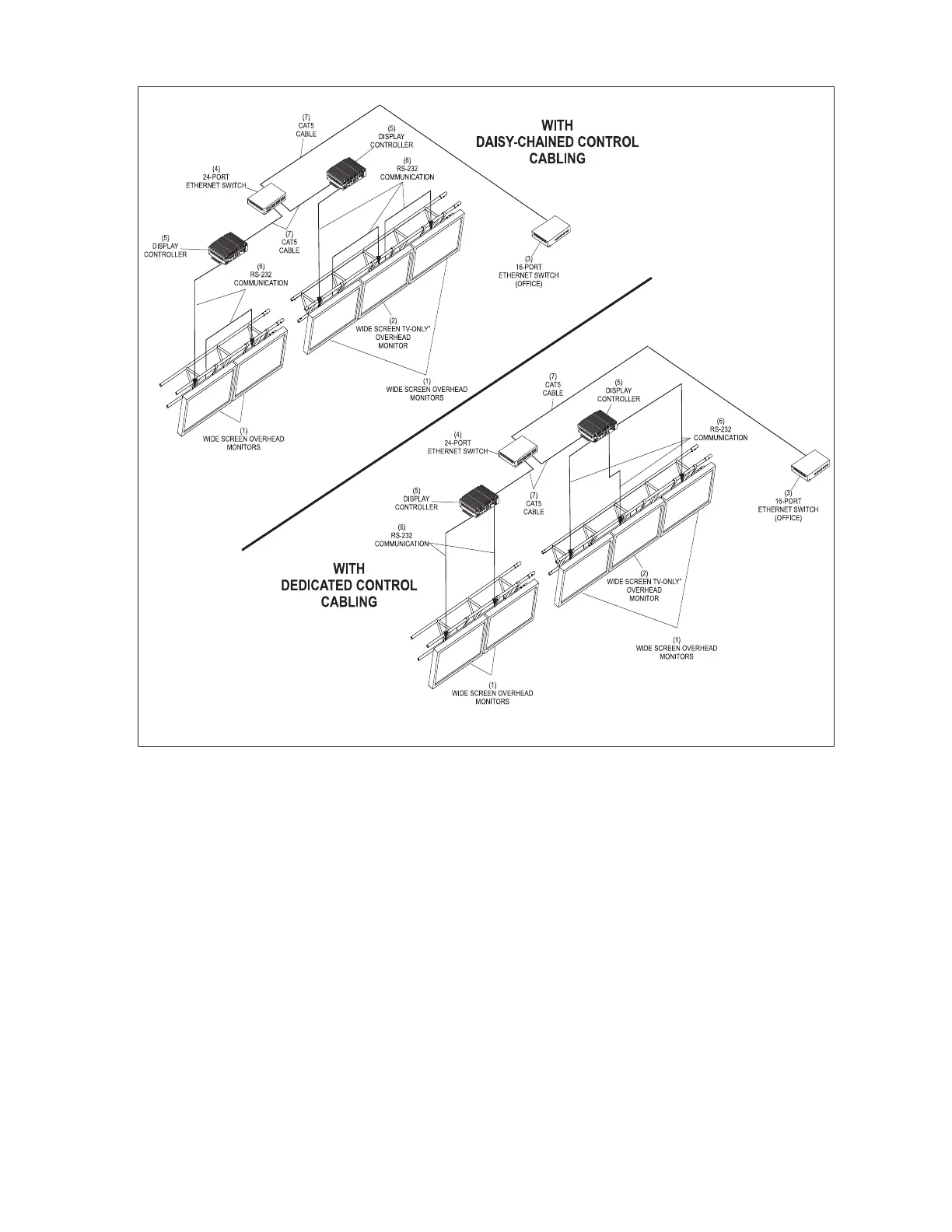 (4) 24-PORT ETHERNET SWITCH (5) DISPLAY CONTROLLER (6) RS-232 COMMUNICATION