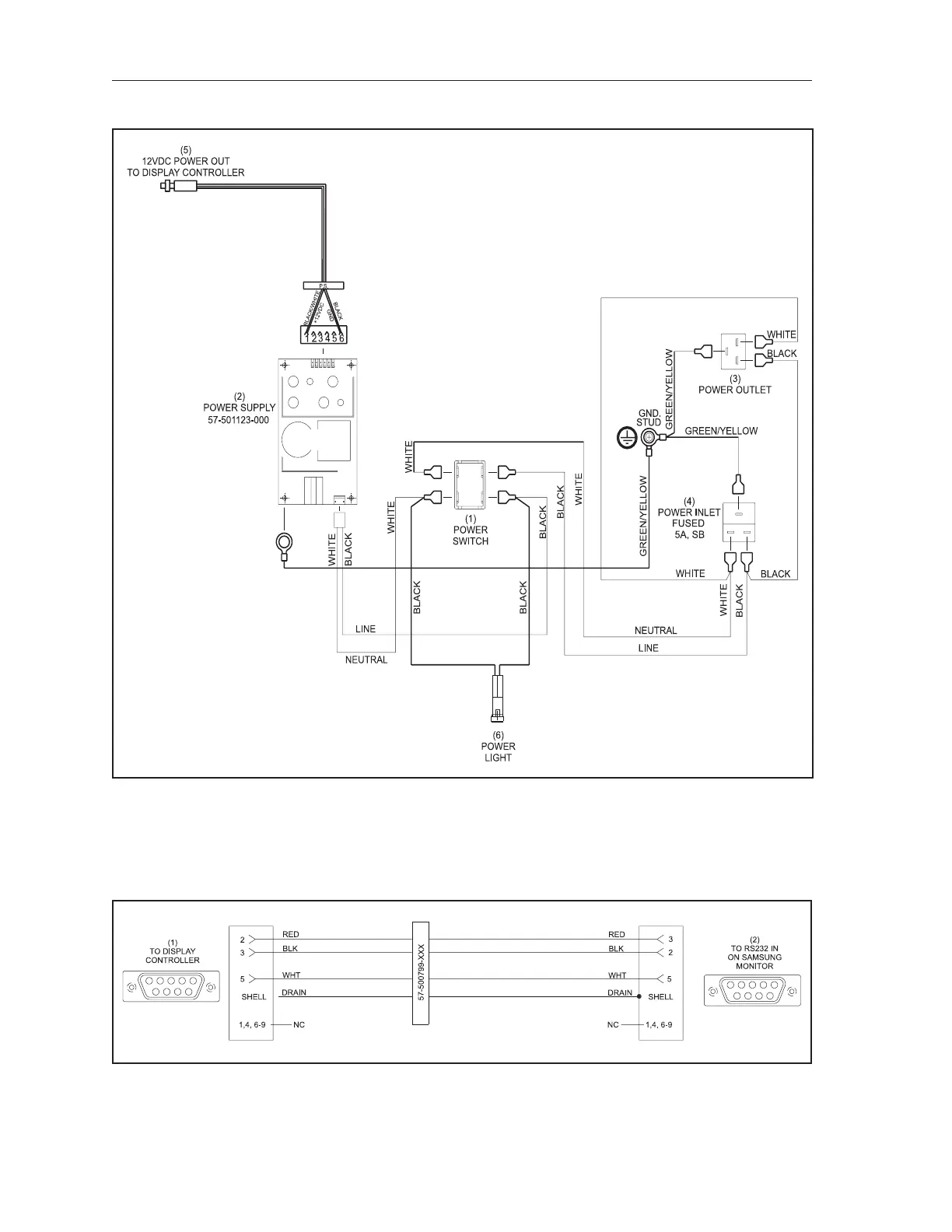 (1) TO DISPLAY CONTROLLER (2) TO RS232 IN ON SAMSUNG MONITOR