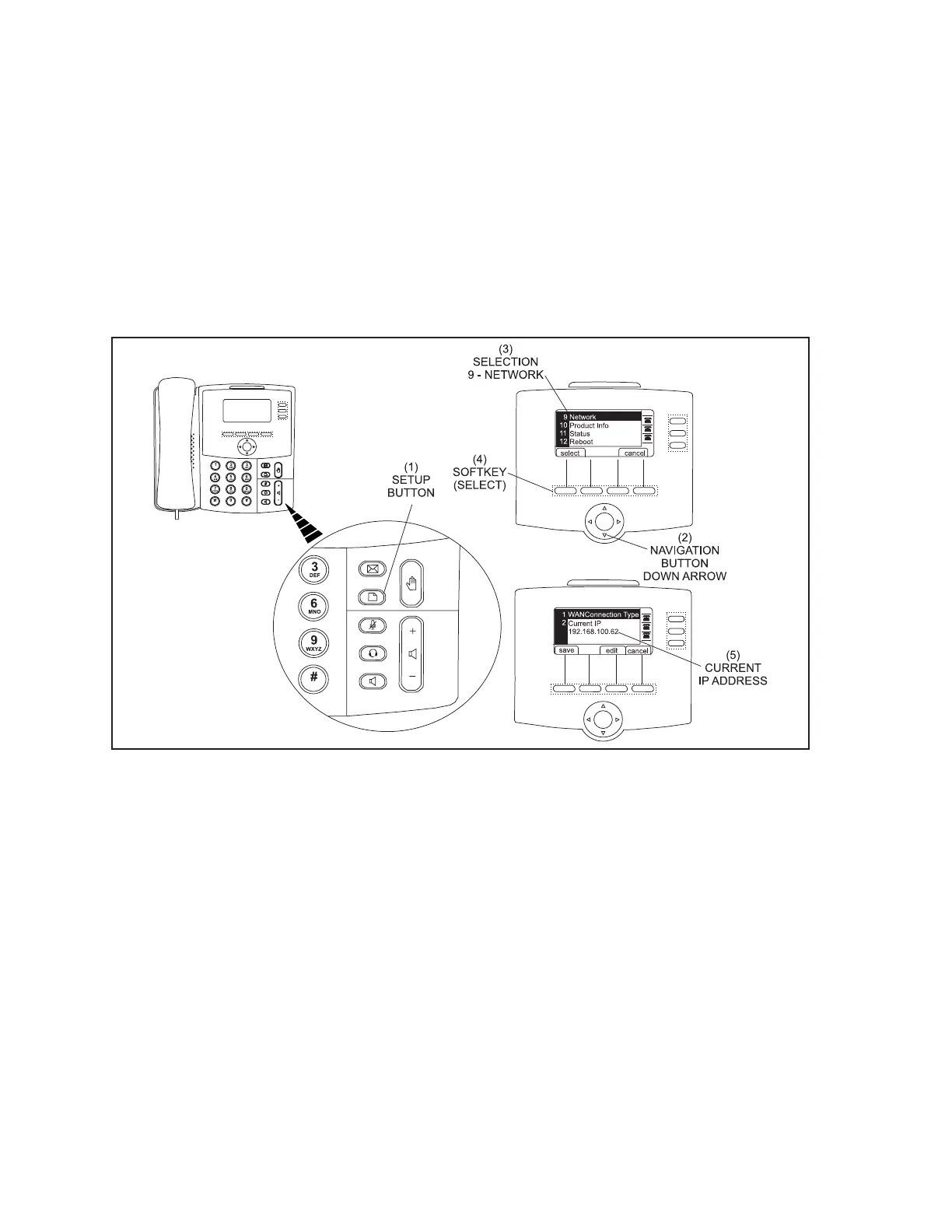 Use the following steps to obtain the address assigned to the phone. Refer to gure titled