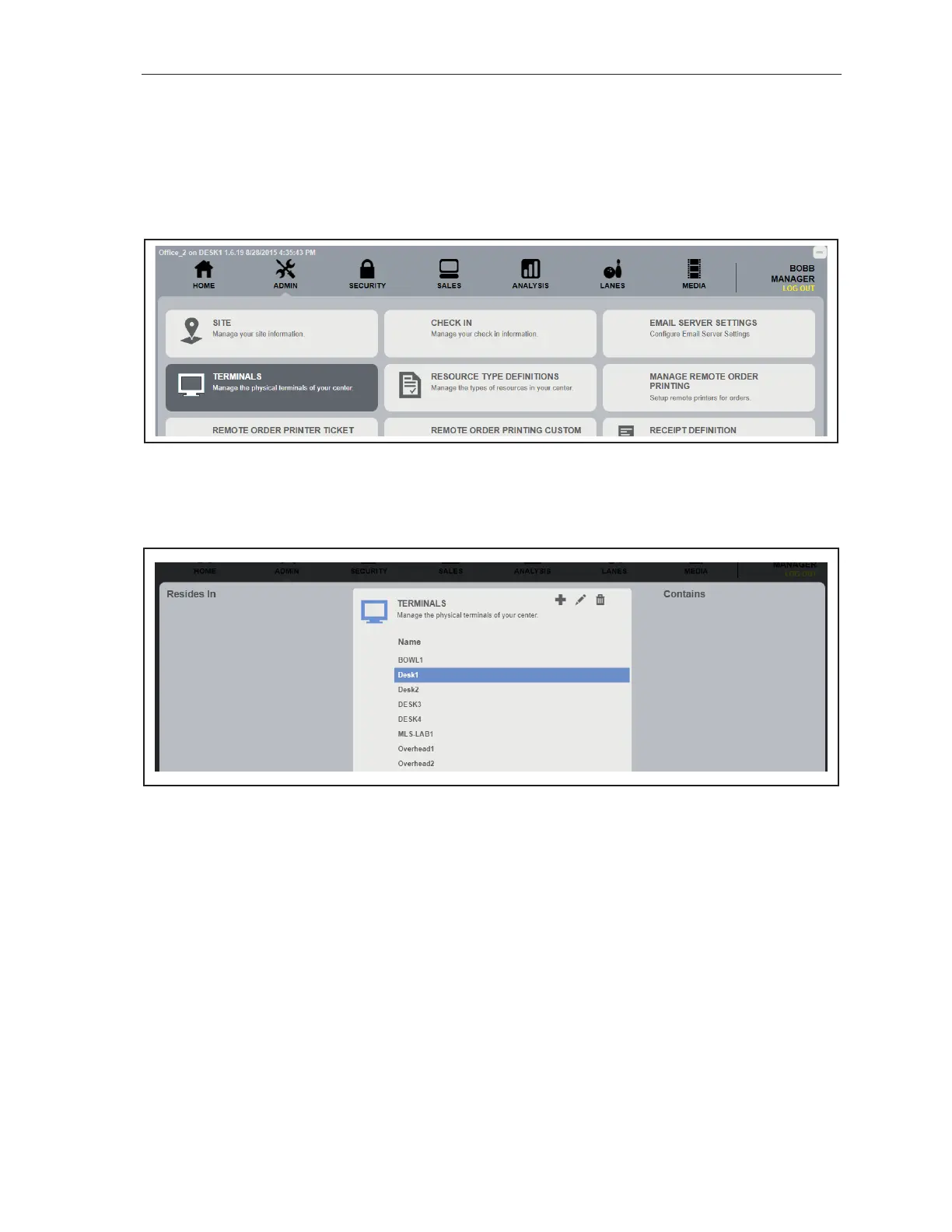 1. Under the ADMIN tab, click TERMINALS. Refer to gure titled Select Terminals.