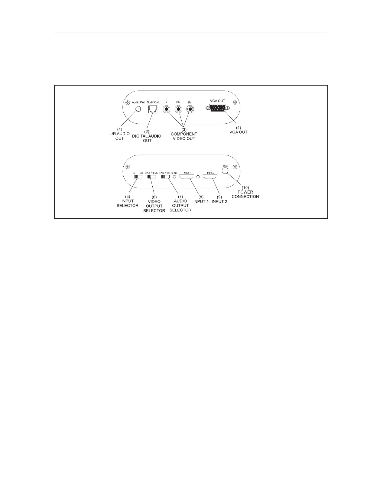 (4) VGA Out - Output connector for video converted to the VGA format.