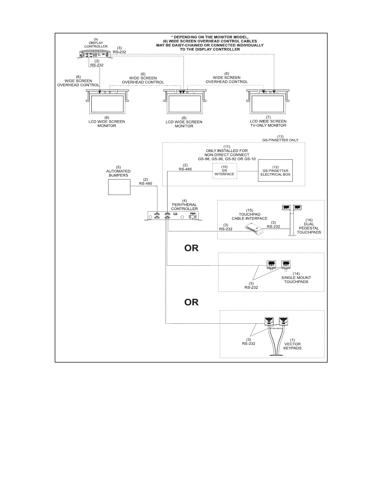 (13) GS PINSETTERS ONLY (14) SINGLE MOUNT TOUCHPADS (15) TOUCHPAD CABLE INTERFACE