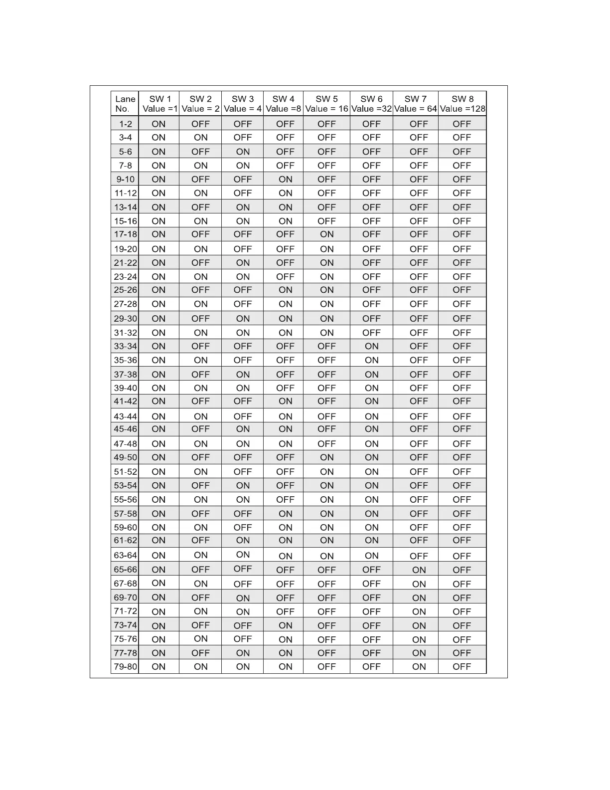 (14) Board Address 1 - Bank of 8 switches used to assign the lane ID. Refer to gure titled