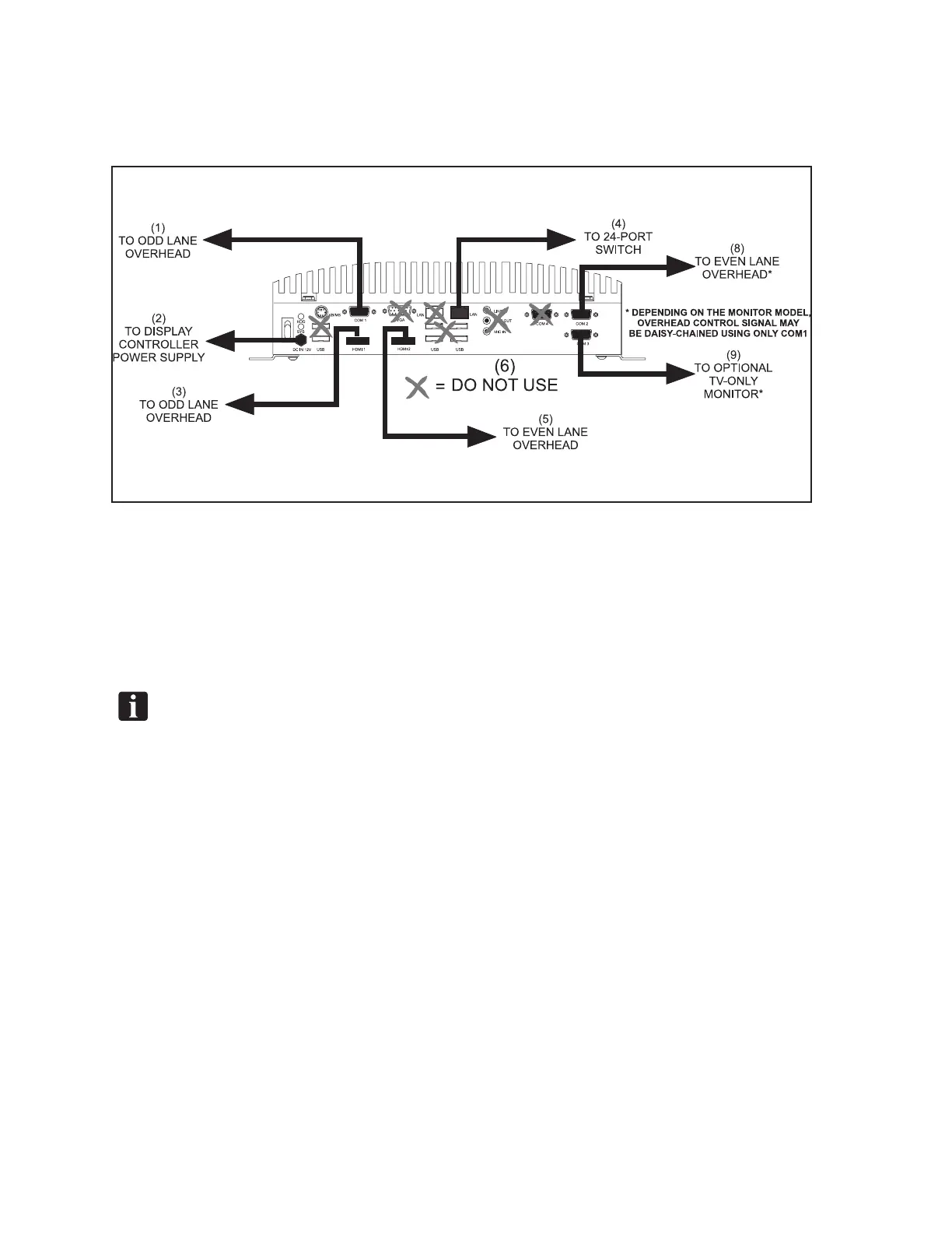 (4) TO 24-PORT SWITCH (5) TO EVEN LANE OVERHEAD (6) DO NOT USE
