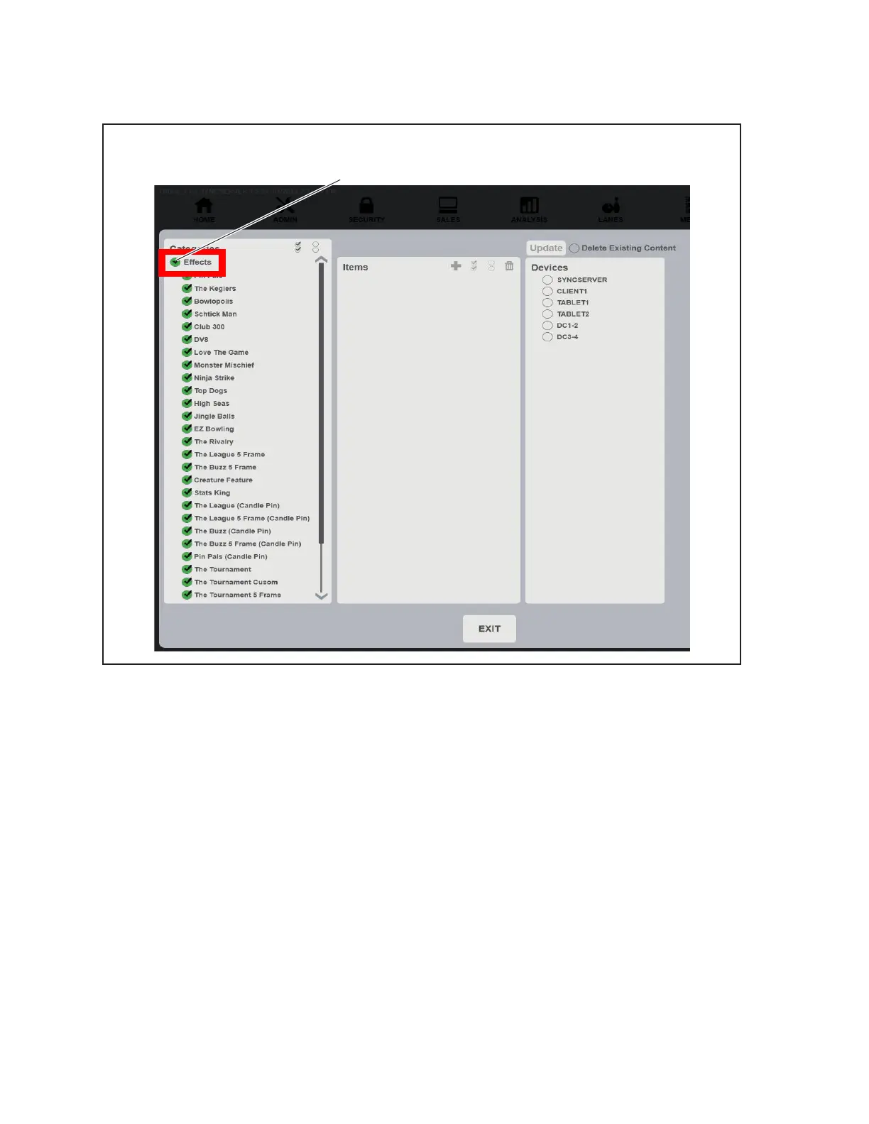 15. Select the check mark next to “Effects” to select all the Effects items. Refer to the gure titled