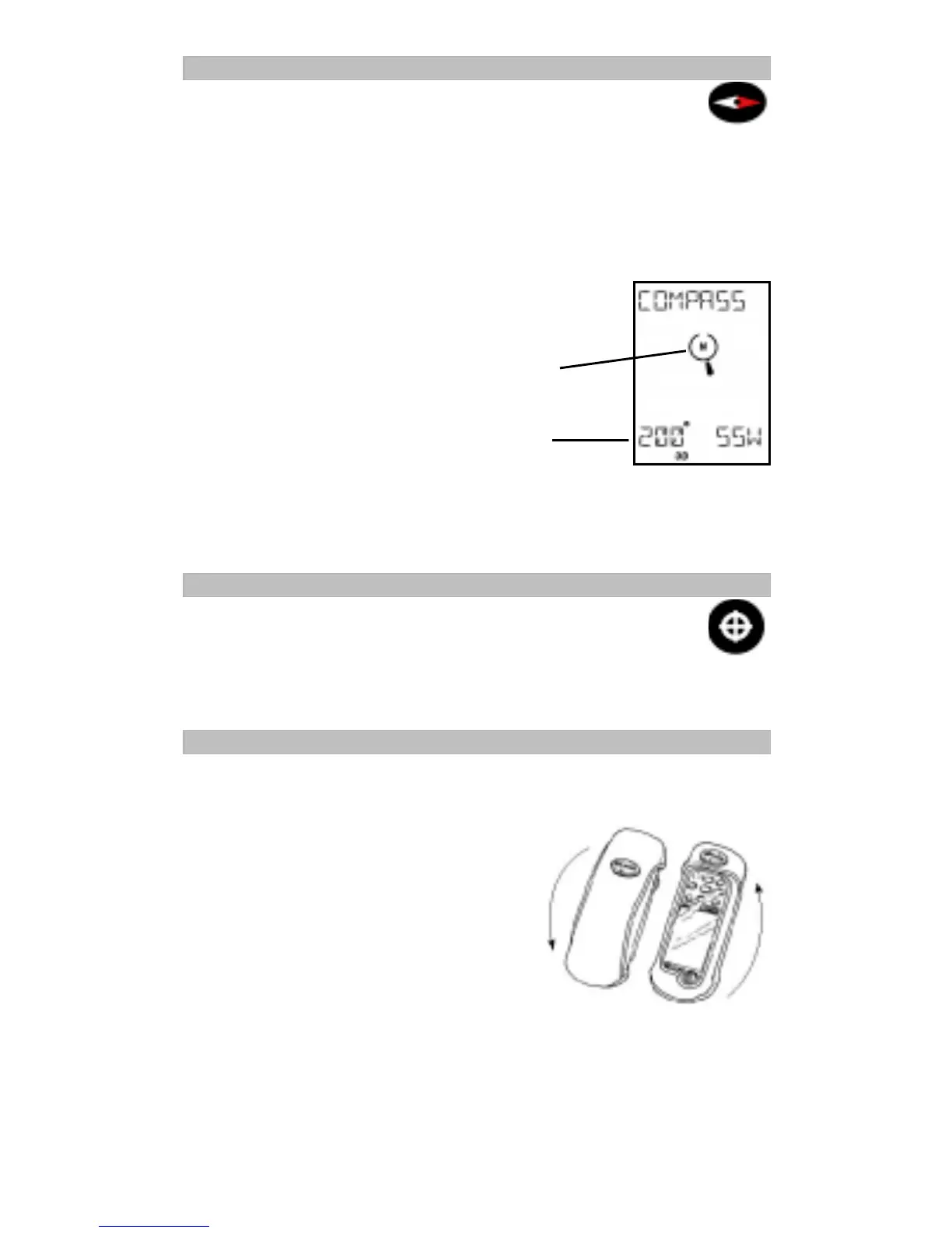 The electronic compass detects the Earth’s magnetic field and displays a compass