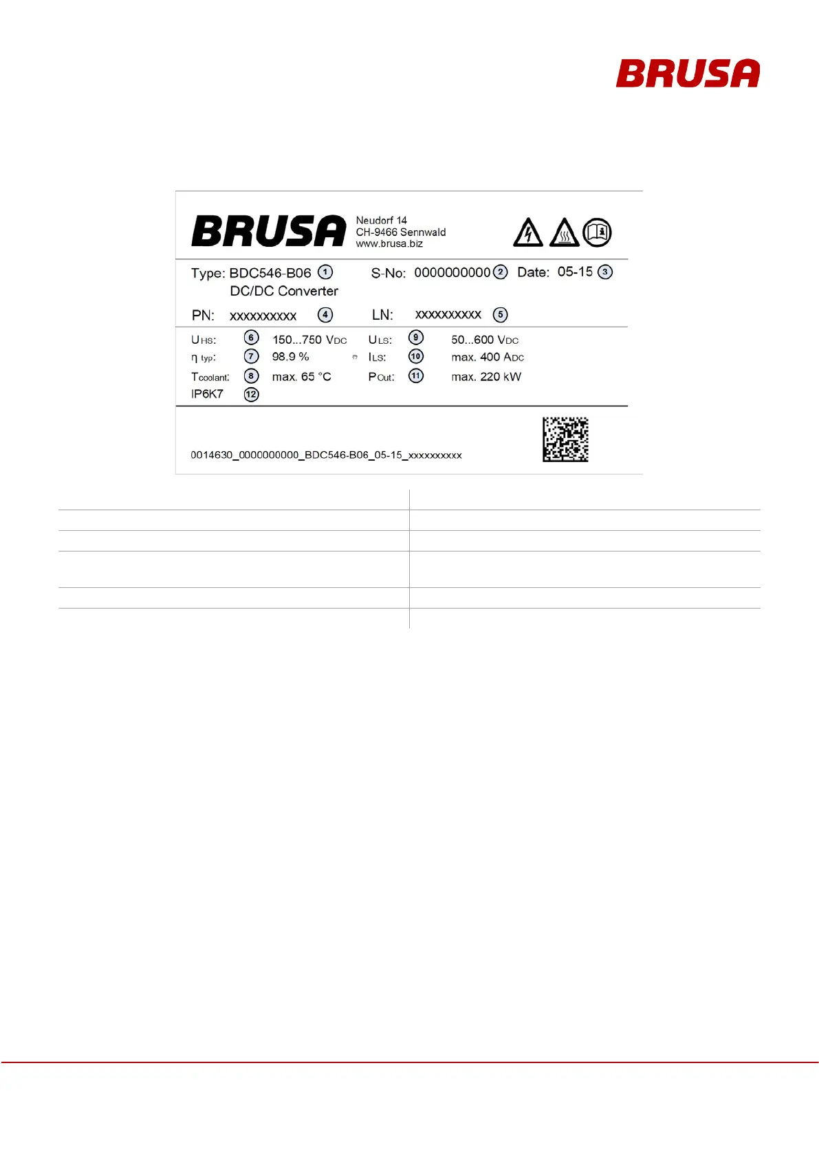 Brusa BDC546 - Type Plate
