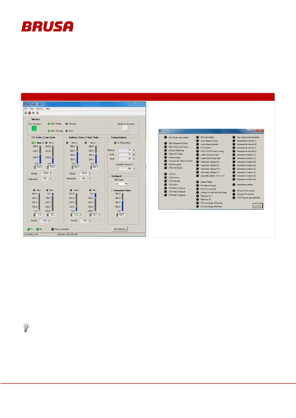 limits for the DC/DC converter. Voltages and temperatures measured by the BDC546 as well as error and warning
