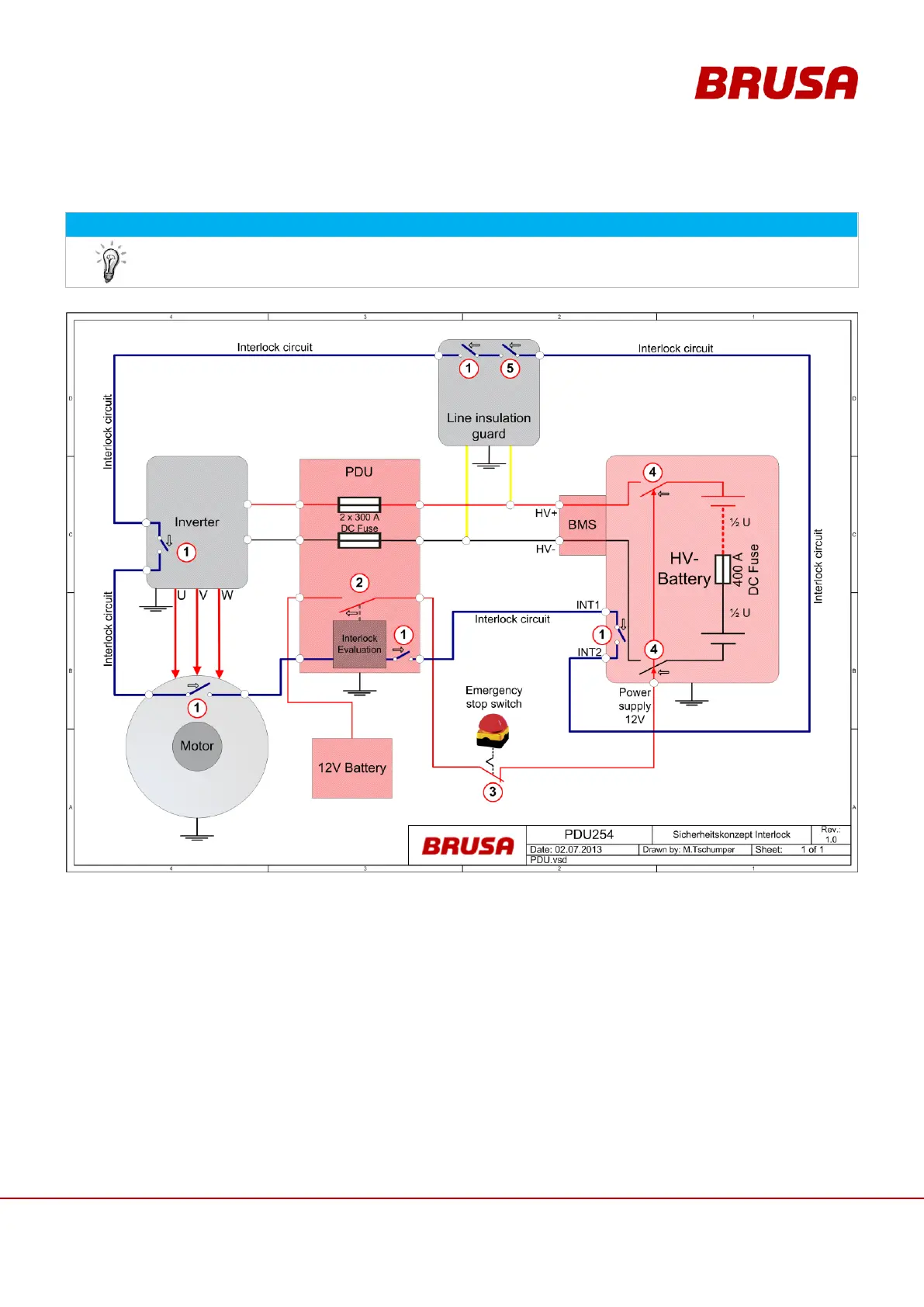 cover, plugged HV connections ...). The interlock evaluation of the PDU switches the 12V supply voltage (2) of the