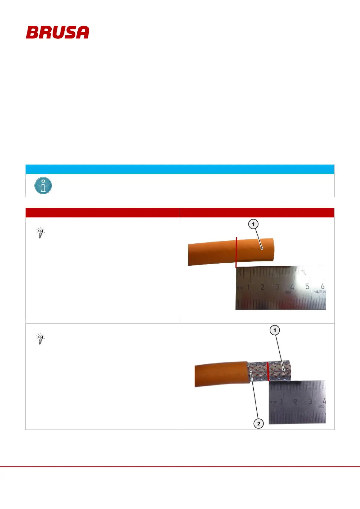 Shorten the shielding braid (1) by 15 mm.
