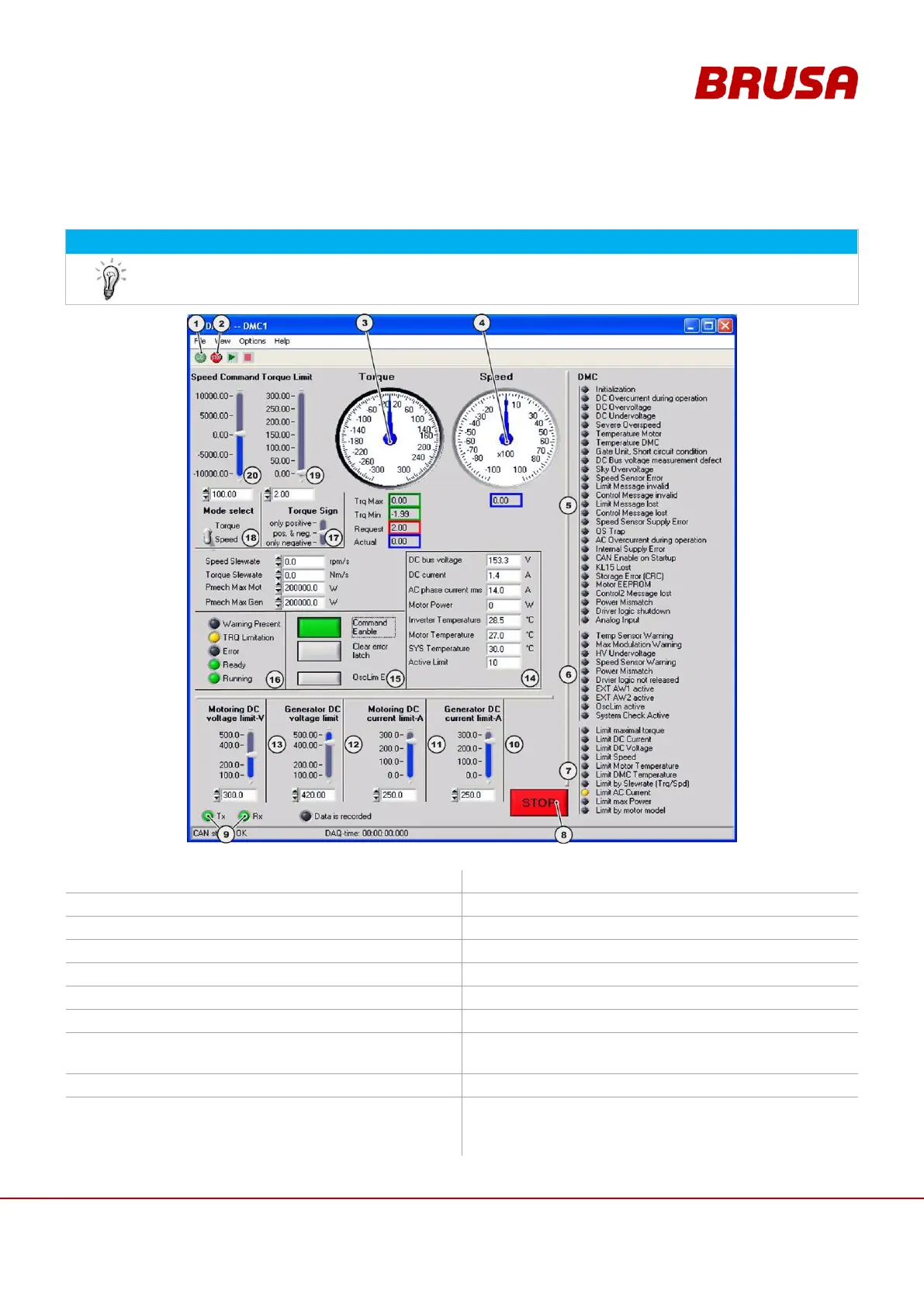 Torque limit (the desired value can be set and/or