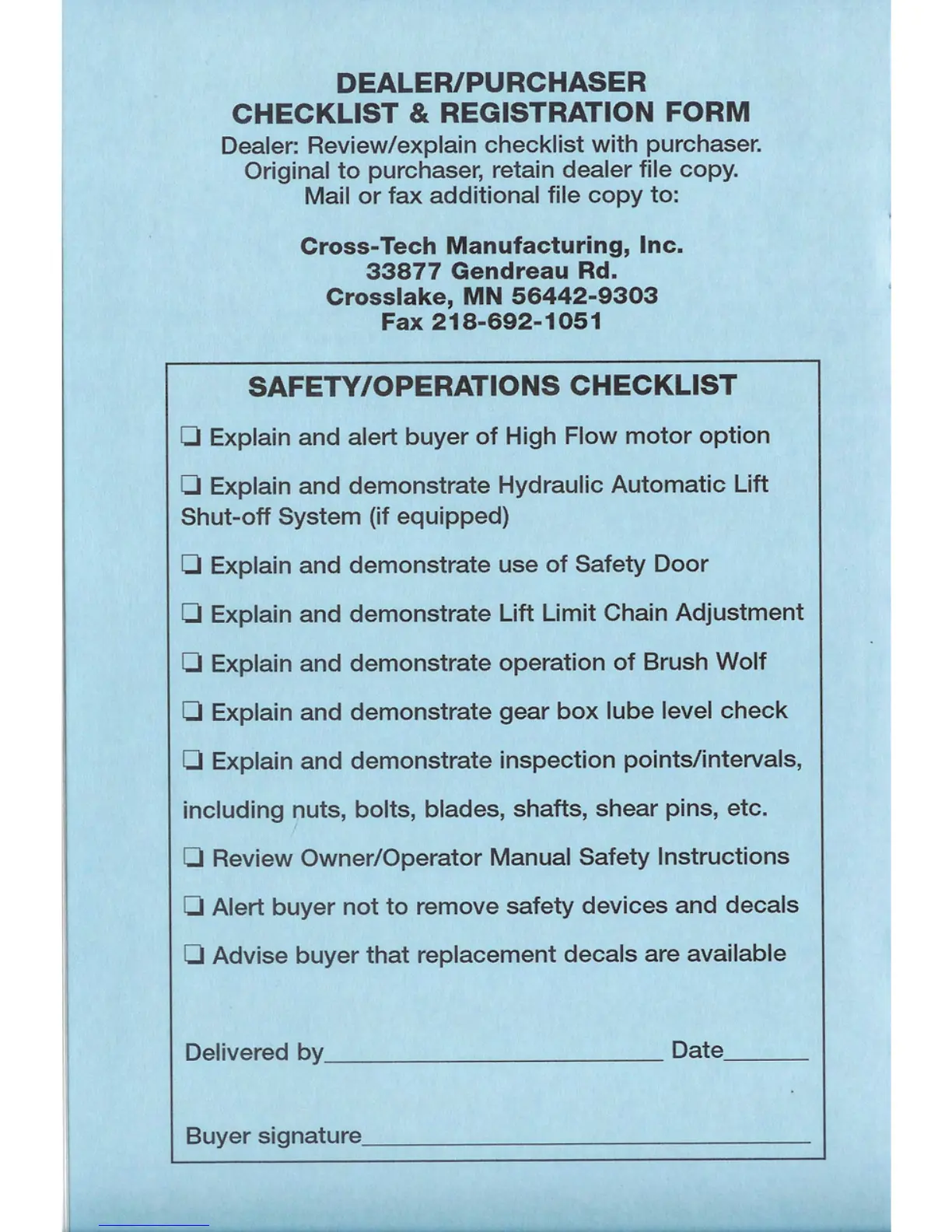 Brush Wolf 4200 - Dealer;Purchaser Checklist & Registration Form