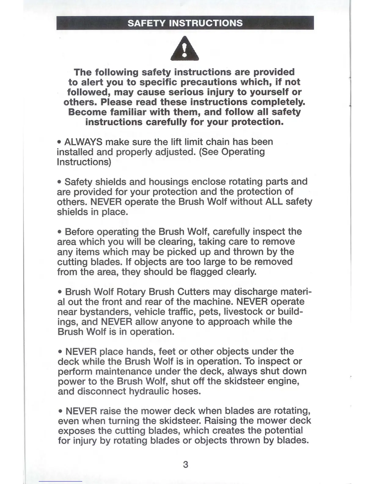 Brush Wolf 4200 - Safety Instructions