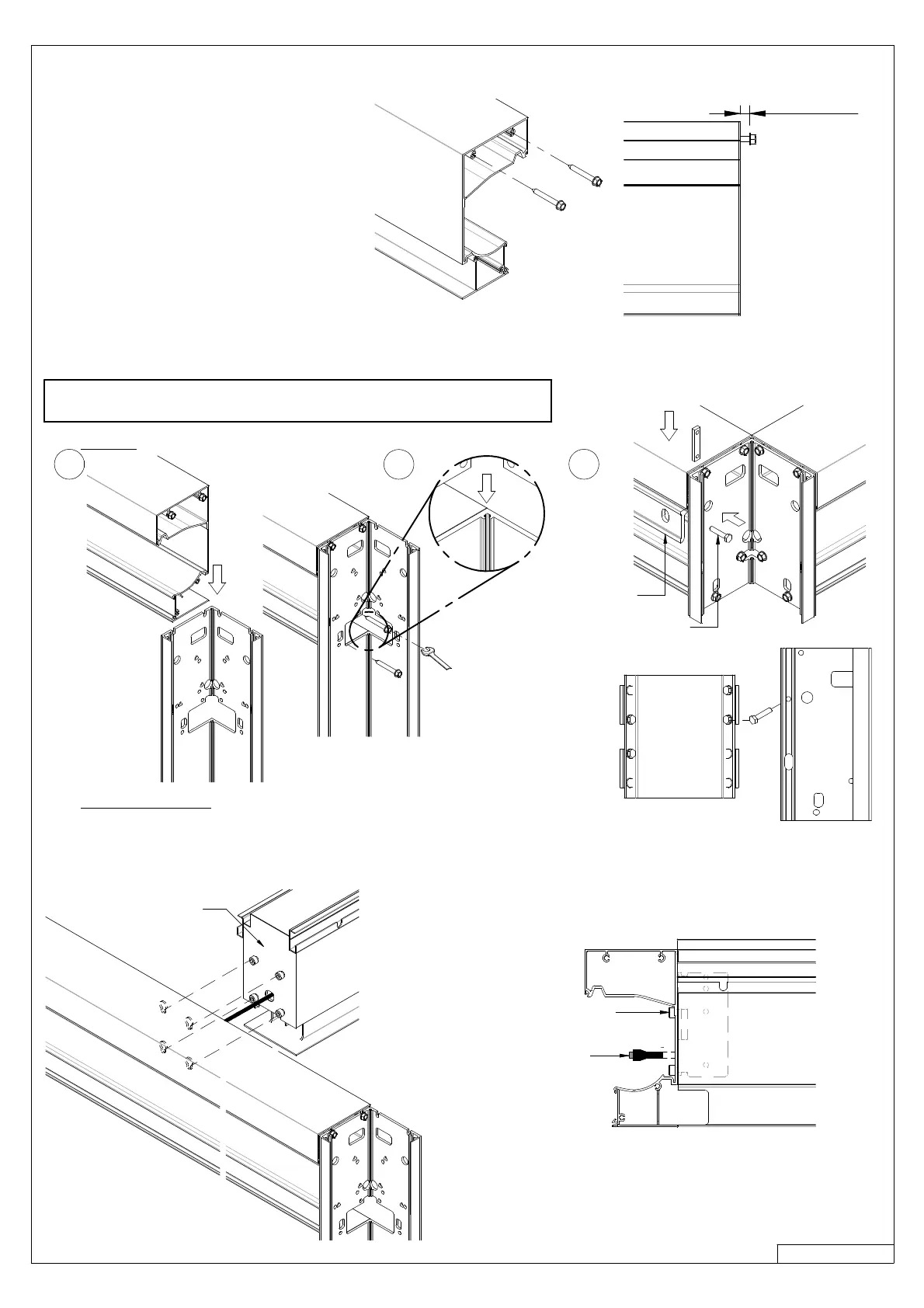 › On both ends of the screen, screw the two upper screws in the profile (6.3x50).