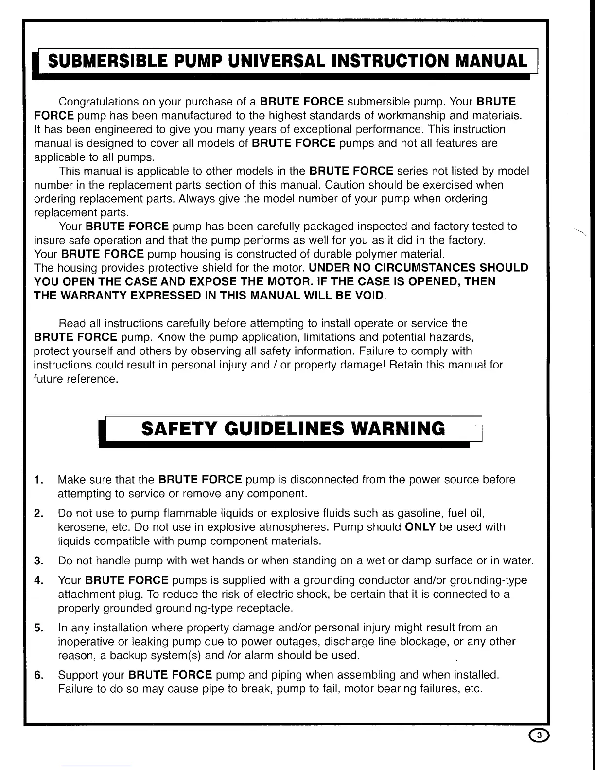 Brute Force AC 22365 - Universal Instruction Manual; Safety Guidelines
