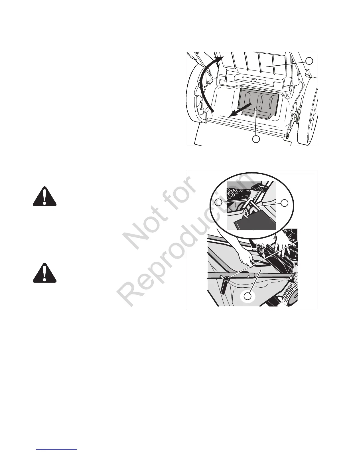 4. Para montar la bolsa de césped en el cortacésped, vea