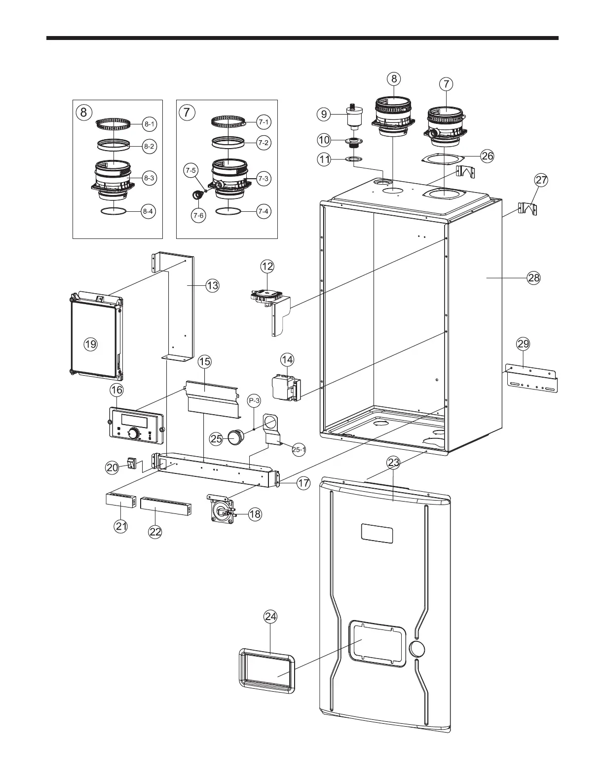 Brute FT Series - Boiler Parts Identification; 100 MBH Casing Assembly Parts