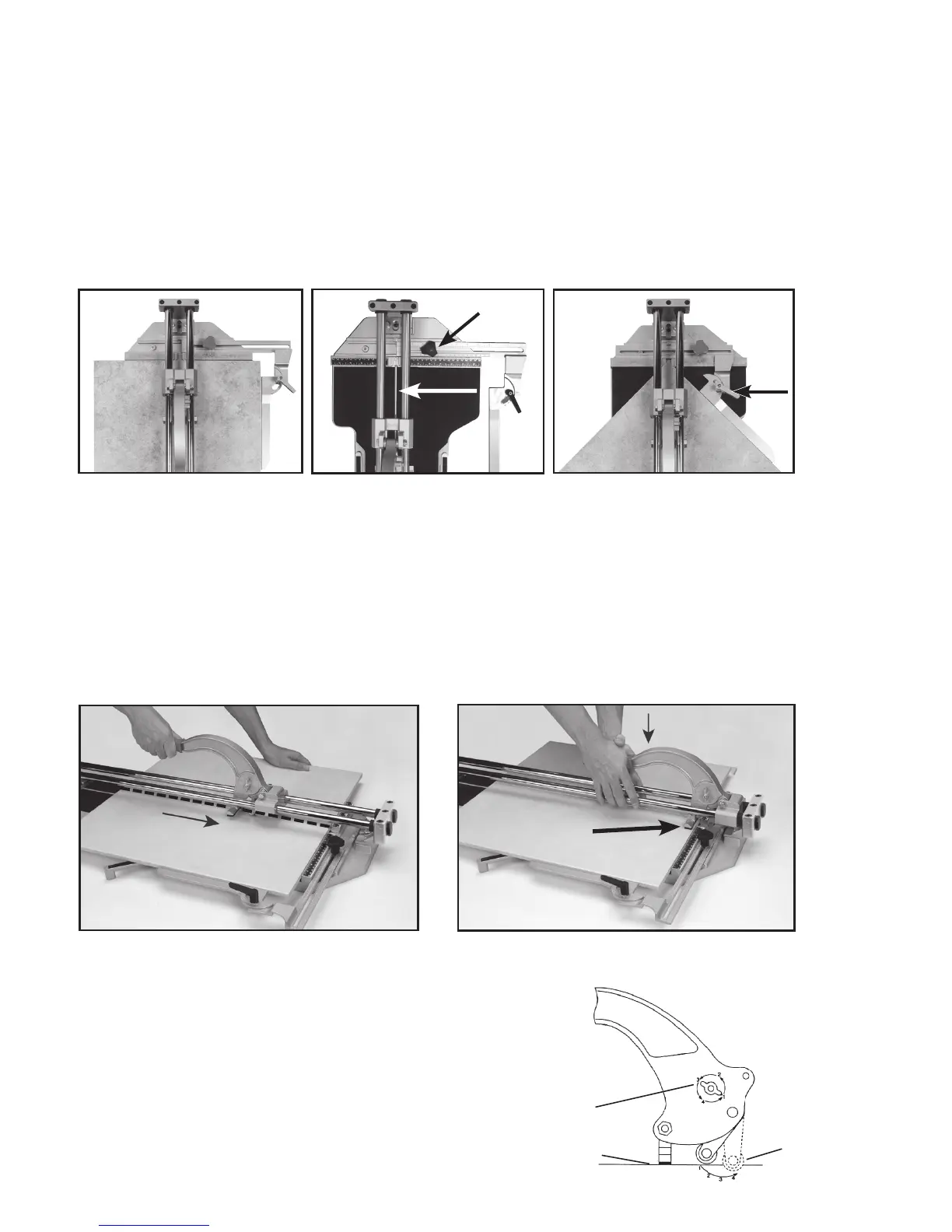 cutting guide (Fig 3). Move tile into the desired angle and lock guide in place.