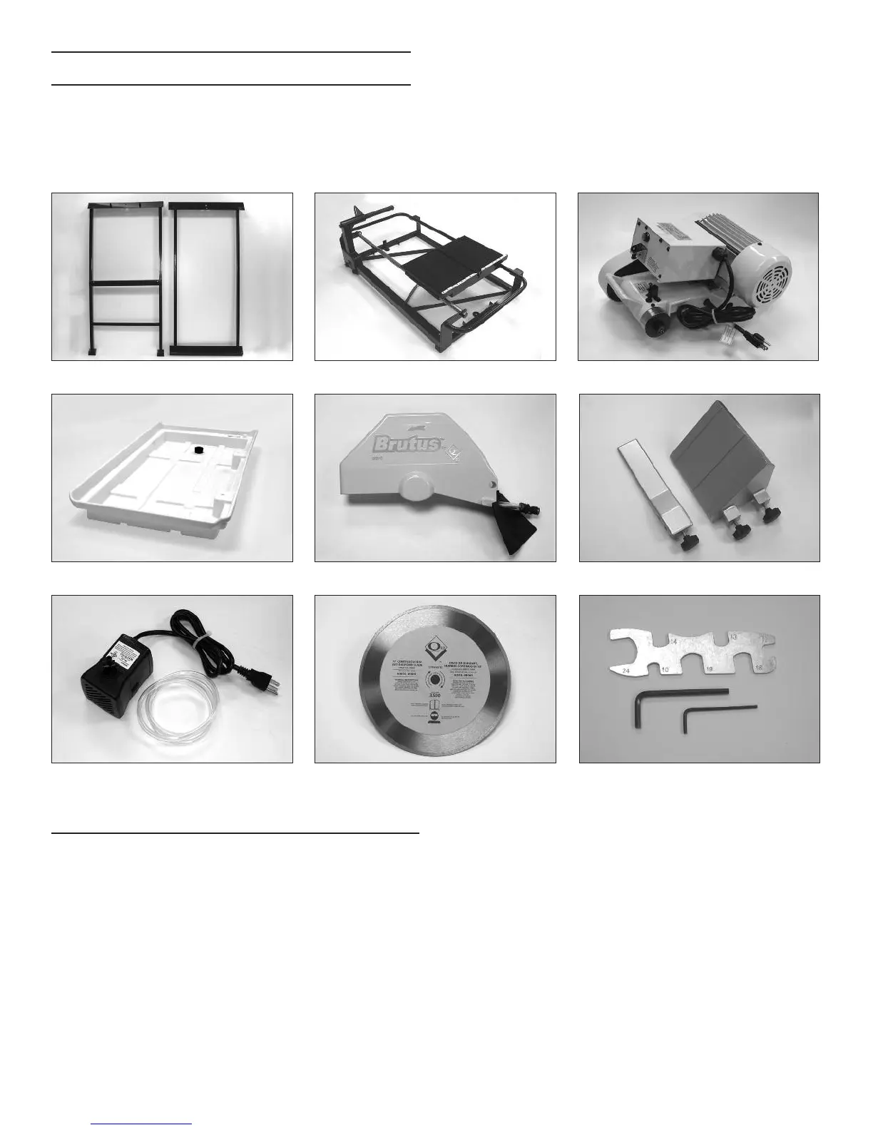 remove all saw components and packing materials. Ensure that you have each item before discarding the container or