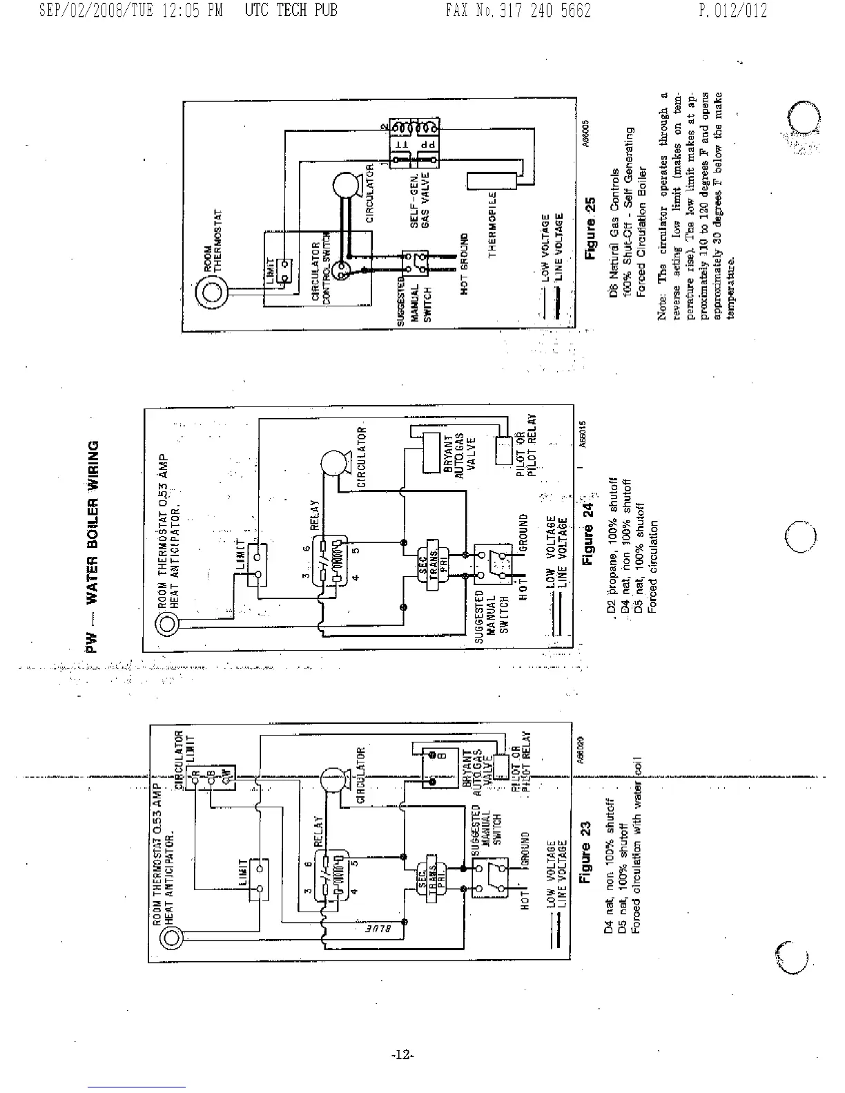 Bryant 234 D - Water Boiler Wiring Diagrams; PW Water Boiler Wiring (Forced Circulation); D5 Natural Gas Controls Wiring