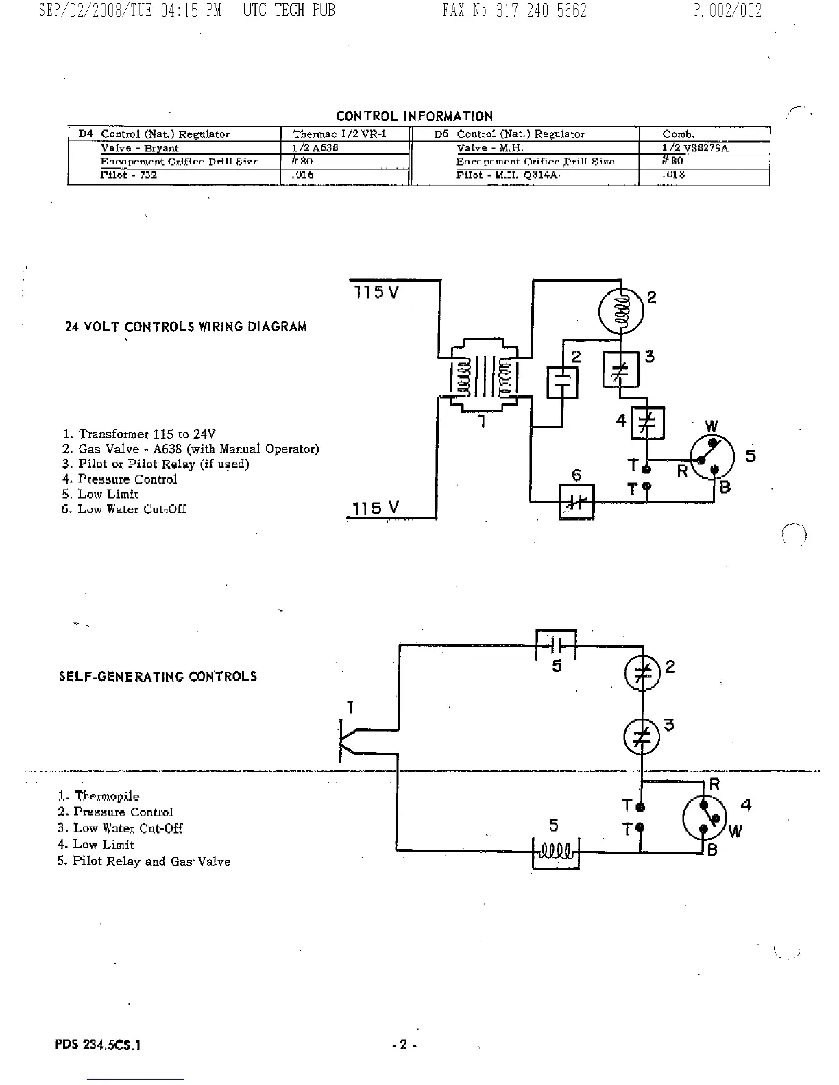 Bryant 234 - Control Information; 24 Volt Controls Wiring Diagram; Self-Generating Controls Wiring Diagram