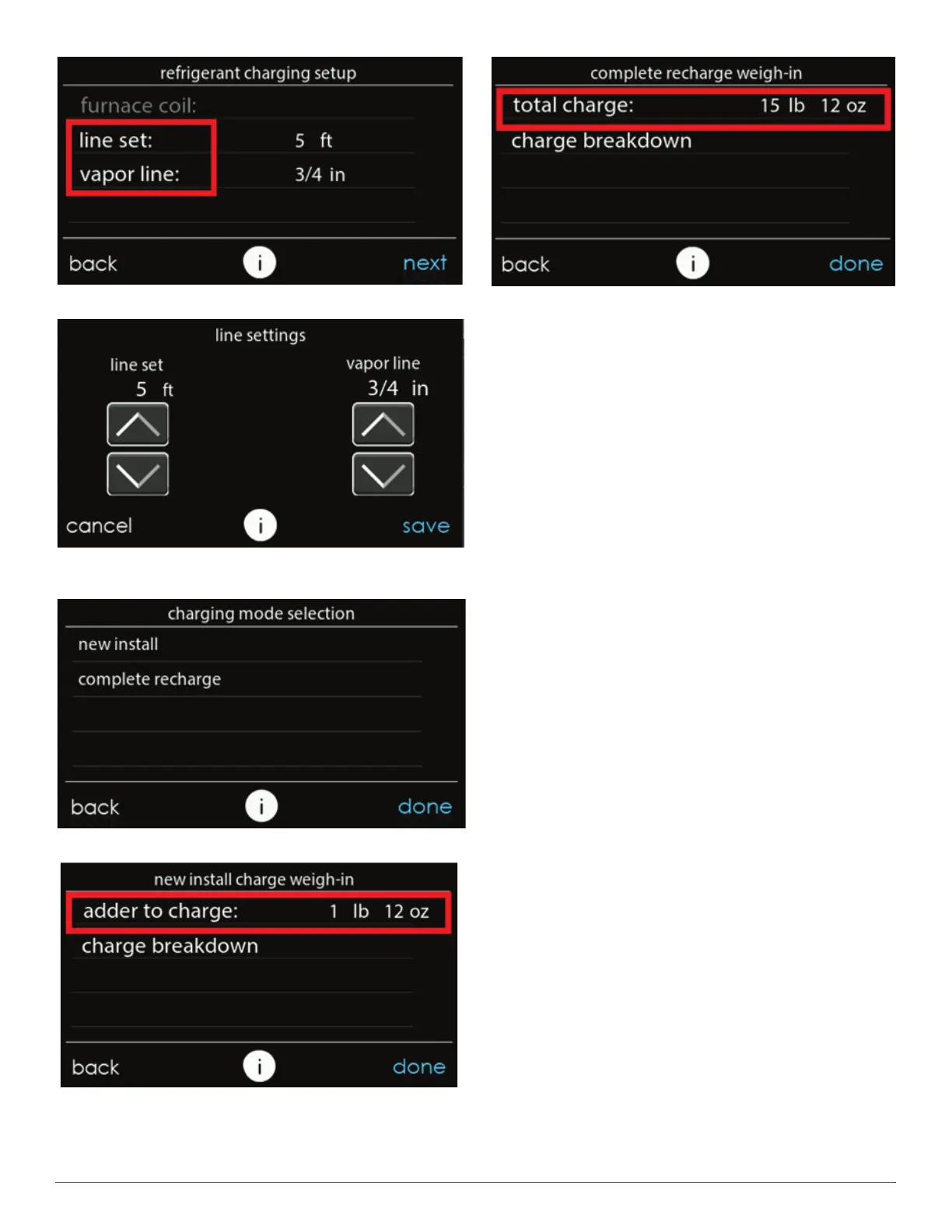 The user interface (UI) must be in Refrigerant Charging mode selected