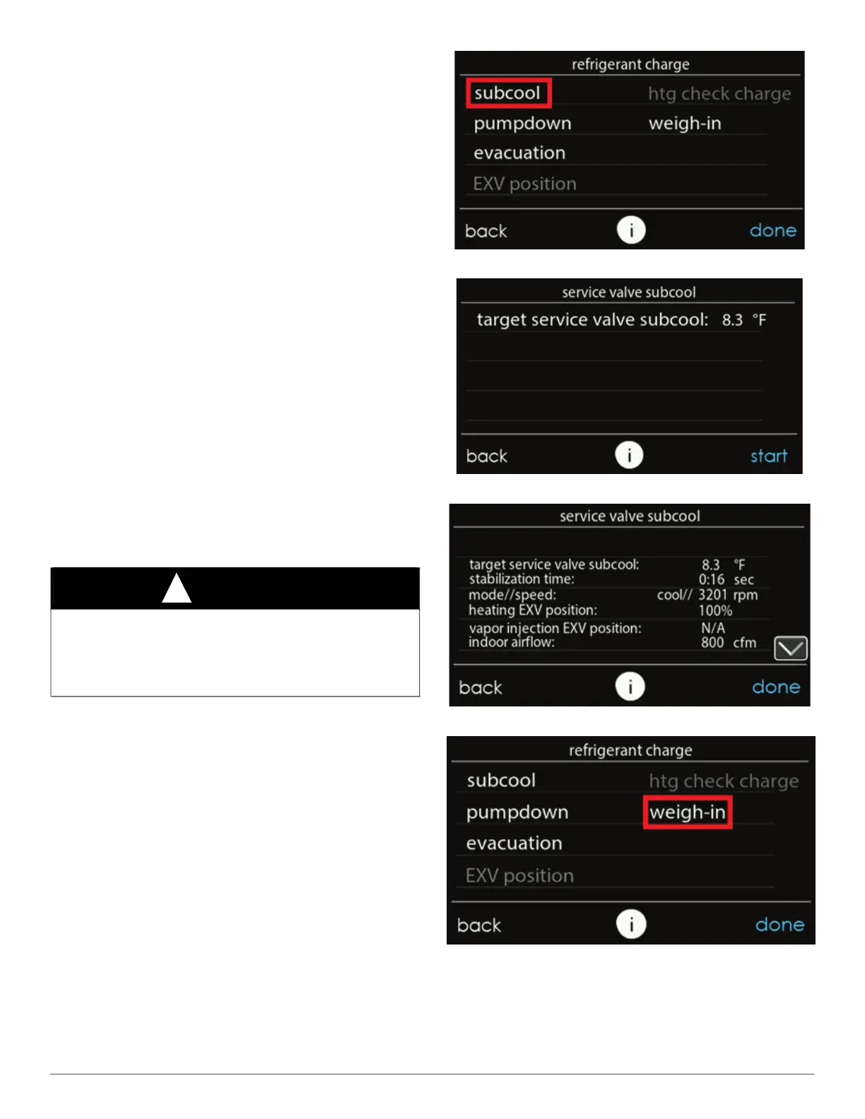 refrigerant must be weighed in. Press the "weigh-in" option in the