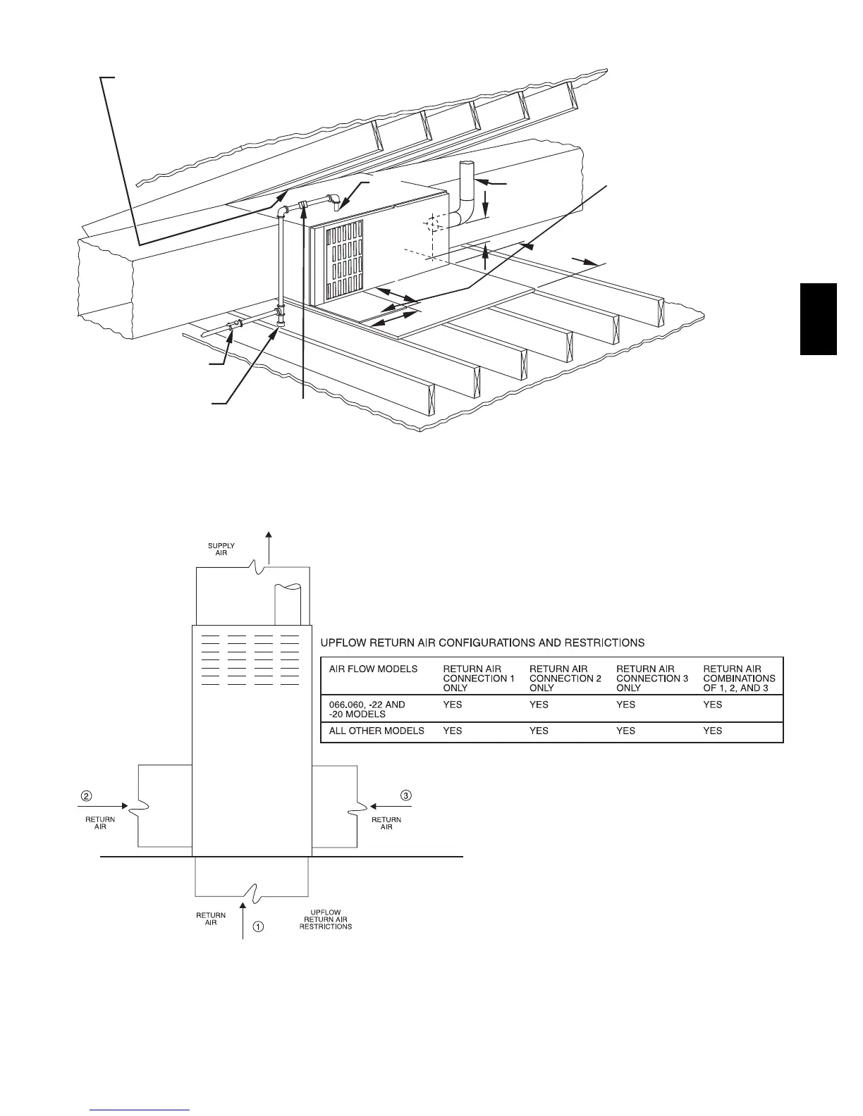 Fig. 18 --- Upflow Return Air Configurations and Restrictions