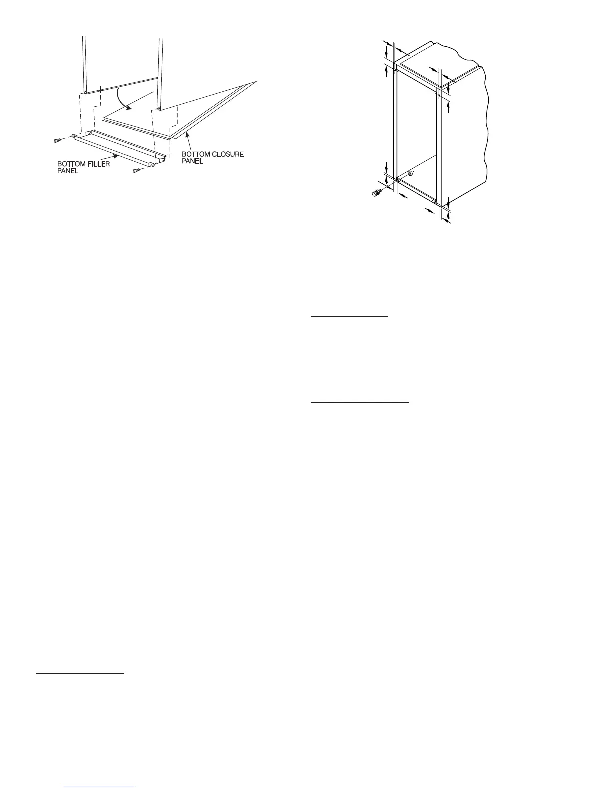 to install leveling legs. To remove bottom closure panel, see Item