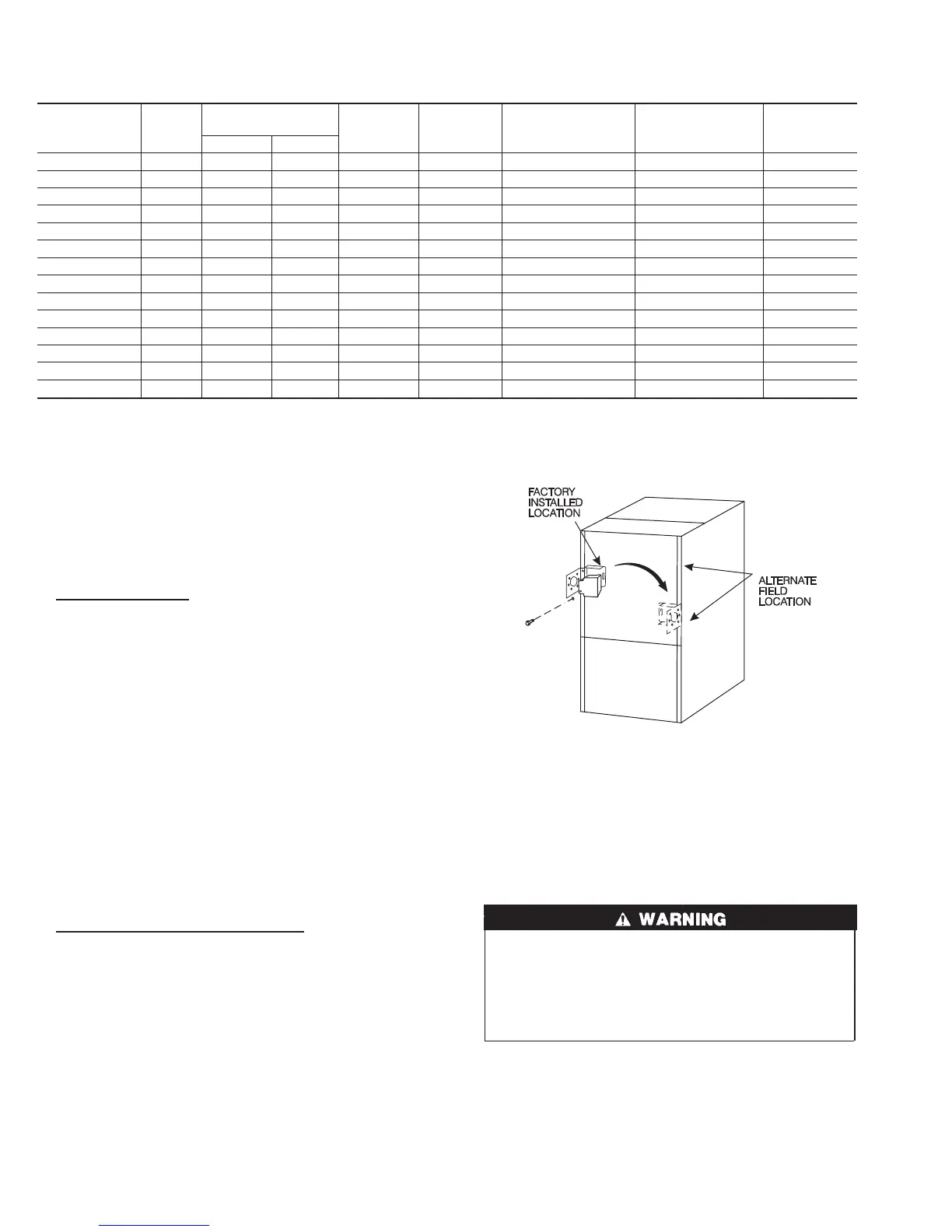 NOTE: Check that duct on side of furnace will not interfere with