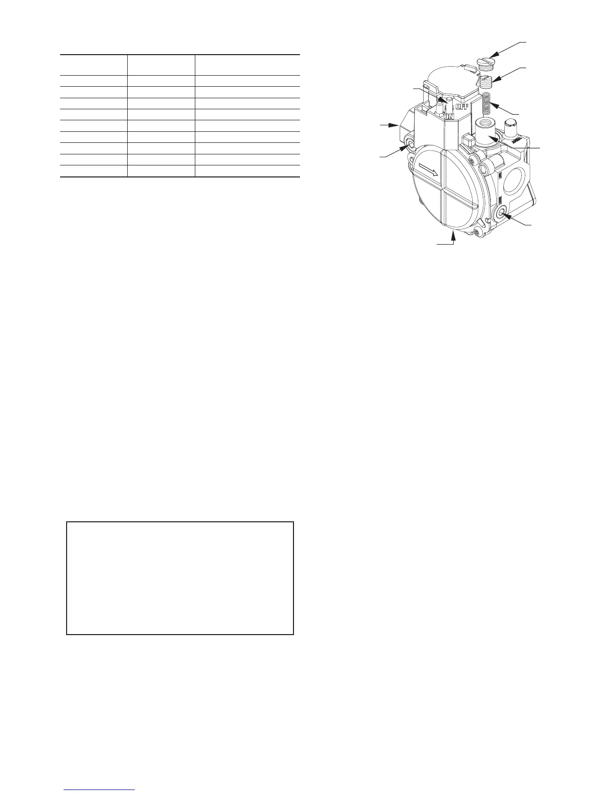 NOTE: Gas valve regulator adjustment cap must be in place for