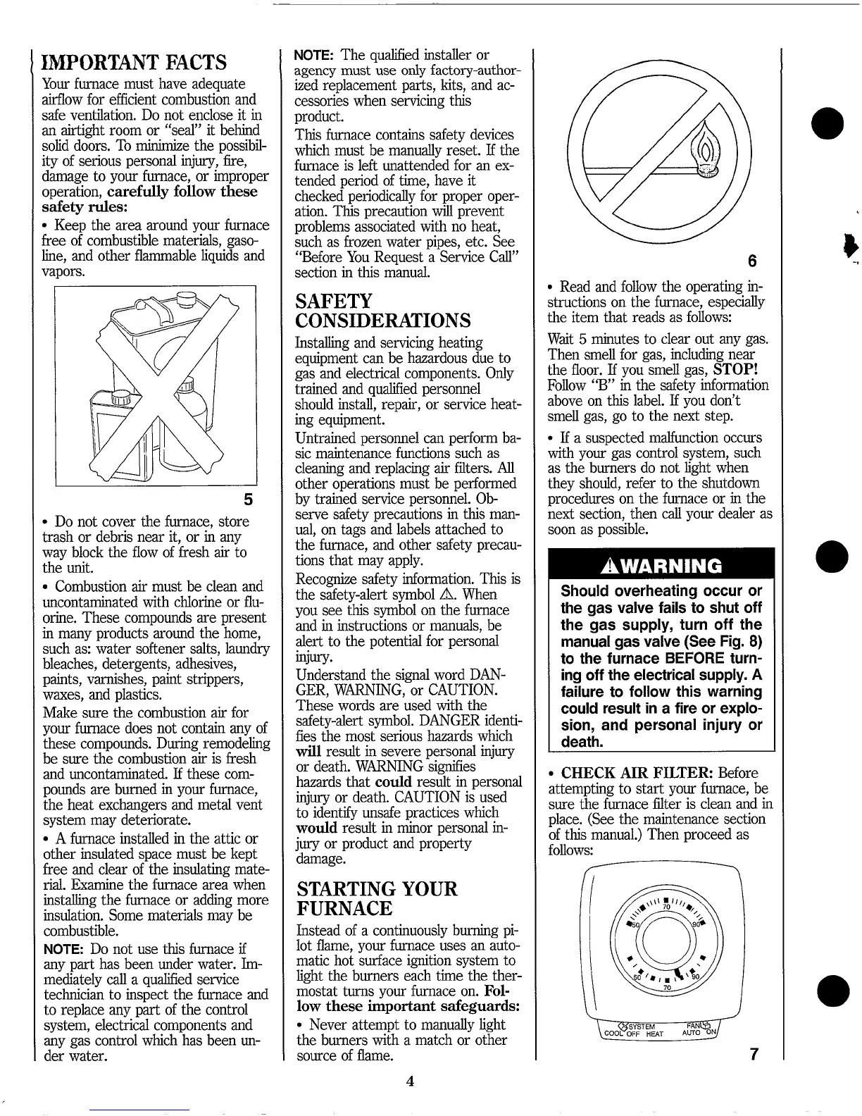 Bryant 330AAV Upflow - Important Operational Facts and Safety; General Furnace Safety Rules; Safety Considerations for Installation & Service; Starting Your Furnace Operation