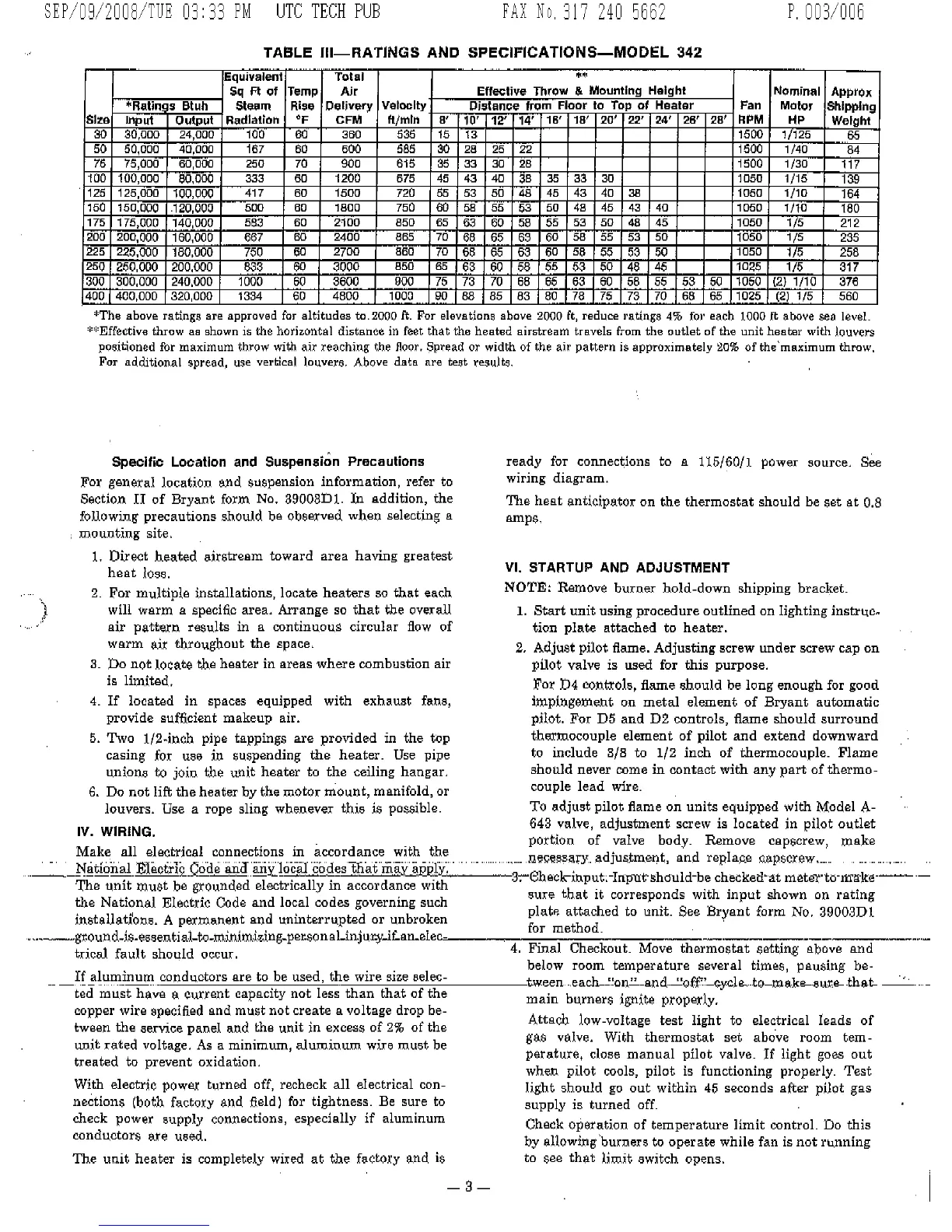 Bryant 342 - Specific Location and Suspension Precautions; Airstream Direction; Multiple Installation Airflow; Combustion Air
