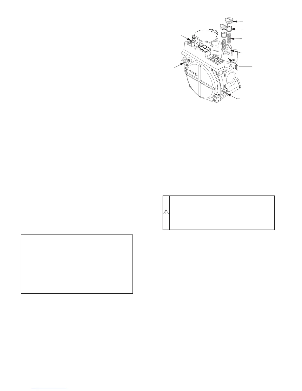 DO NOT bottom out gas valve regulator adjusting screw.
