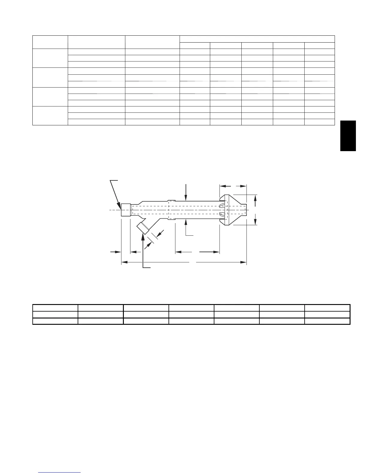 { Dimension D may be lengthened to 60 in. maximum. Dimension D may also be shortened by cutting the pipes provided in the kit to 12 in. minimum.