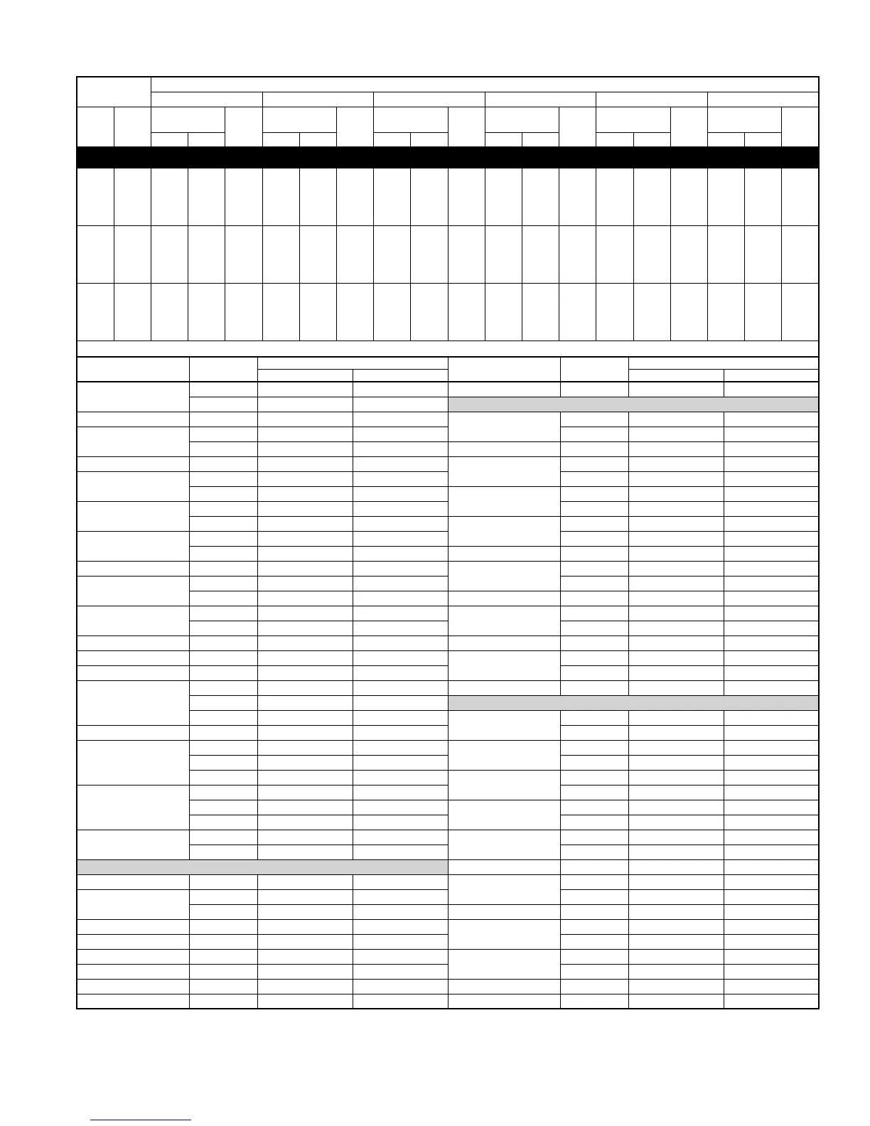 DETAILED COOLING CAPACITIES* Continued