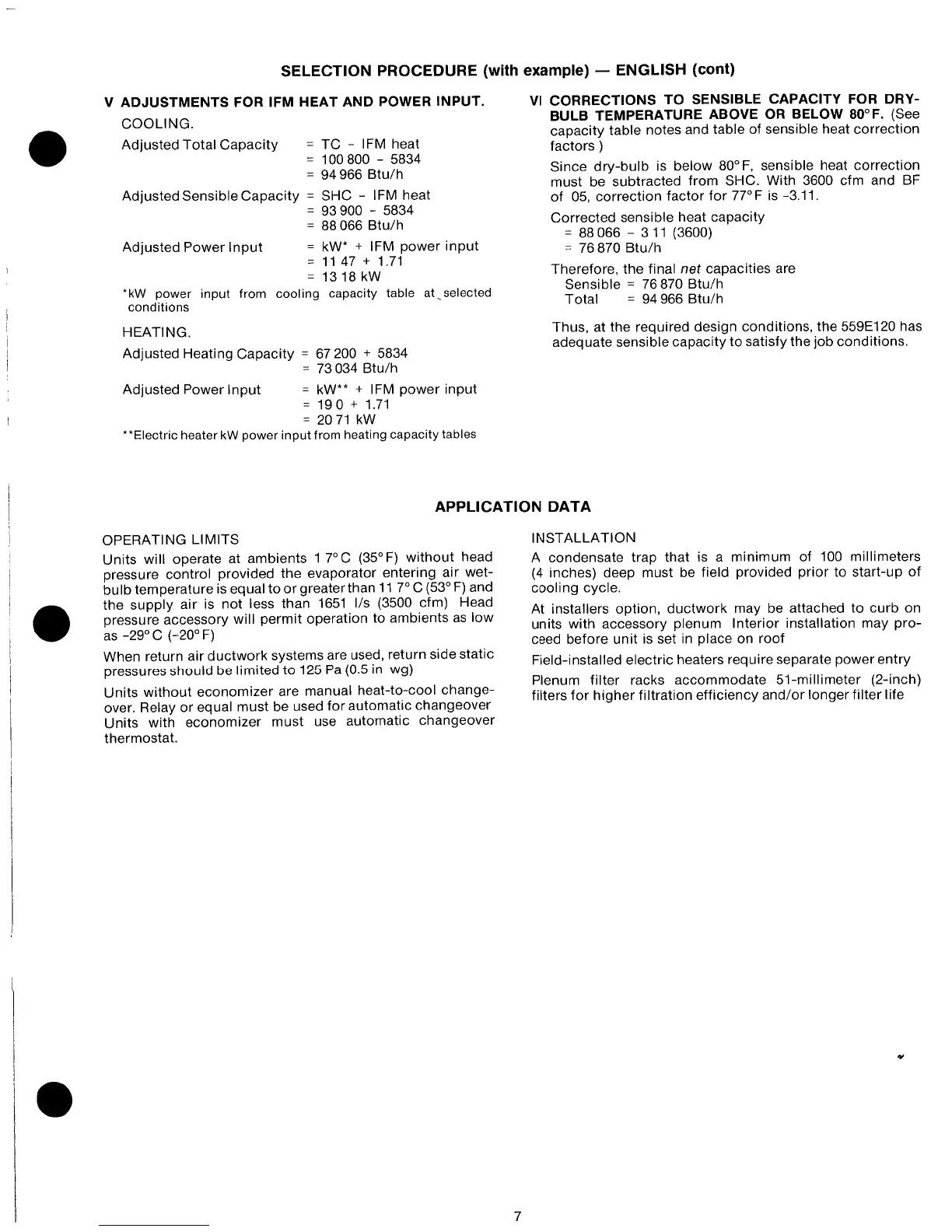 Bryant 559E - Selection Procedure and Application Data; Unit Selection Procedure; Application Data and Operating Limits